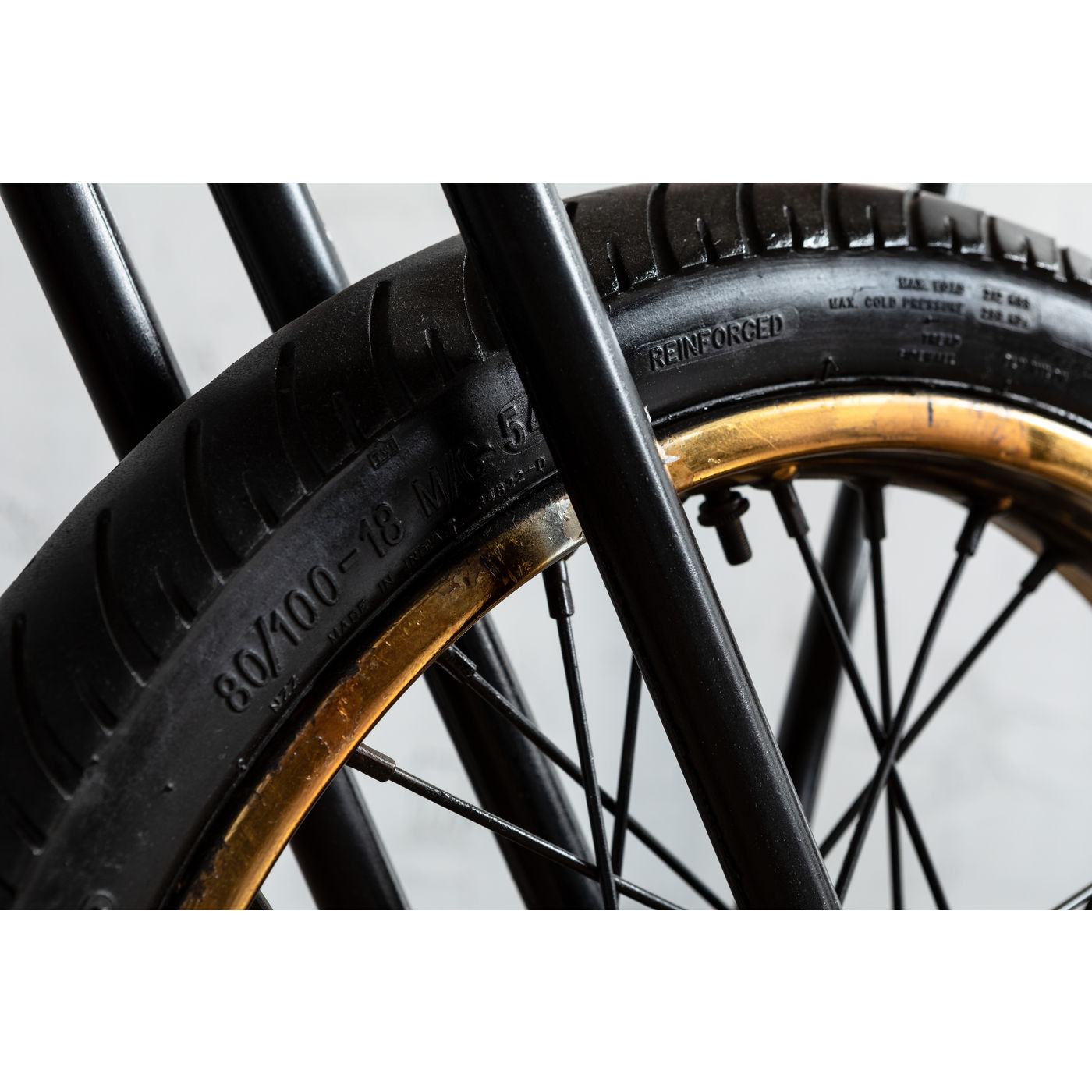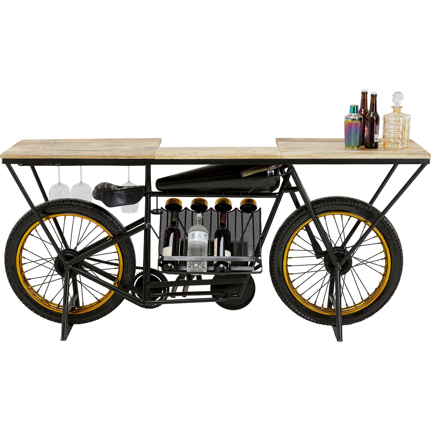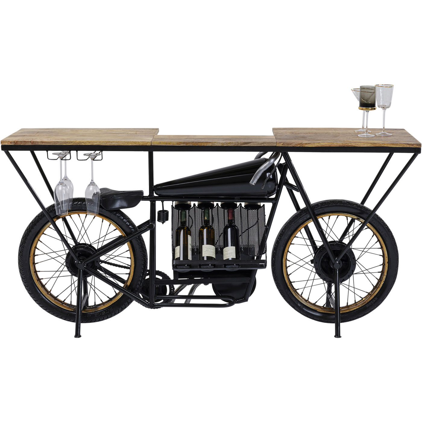 Cette console, qui peut être parfaitement équipée comme un bar, est probablement le rêve de nombreuses dames motards et de nombreux grands garçons: design décontracté dans un style industriel, panneau de bois de manguier rustique et de nombreux détails de design rétro.