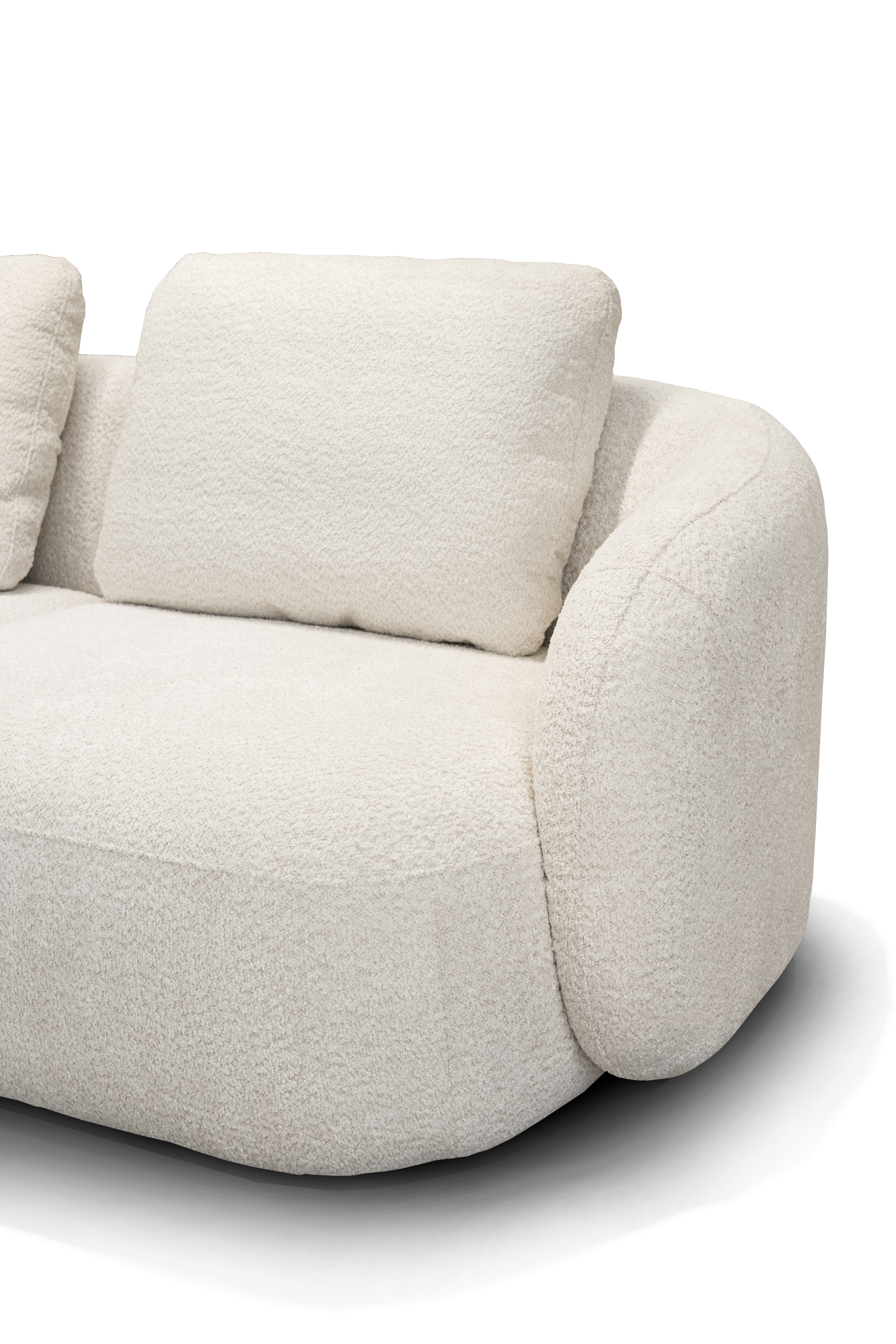 Un design pour se détendre : le canapé Dolci séduit par ses formes douces et organiques, son rembourrage généreux et un look qui dégage immédiatement une sensation de confort et de sécurité. L’assise spacieuse, les accoudoirs moelleusement rembourrés et les coussins de dossier volumineux en font l’endroit préféré idéal — que ce soit dans le salon, un lounge confortable ou un espace de détente élégant.