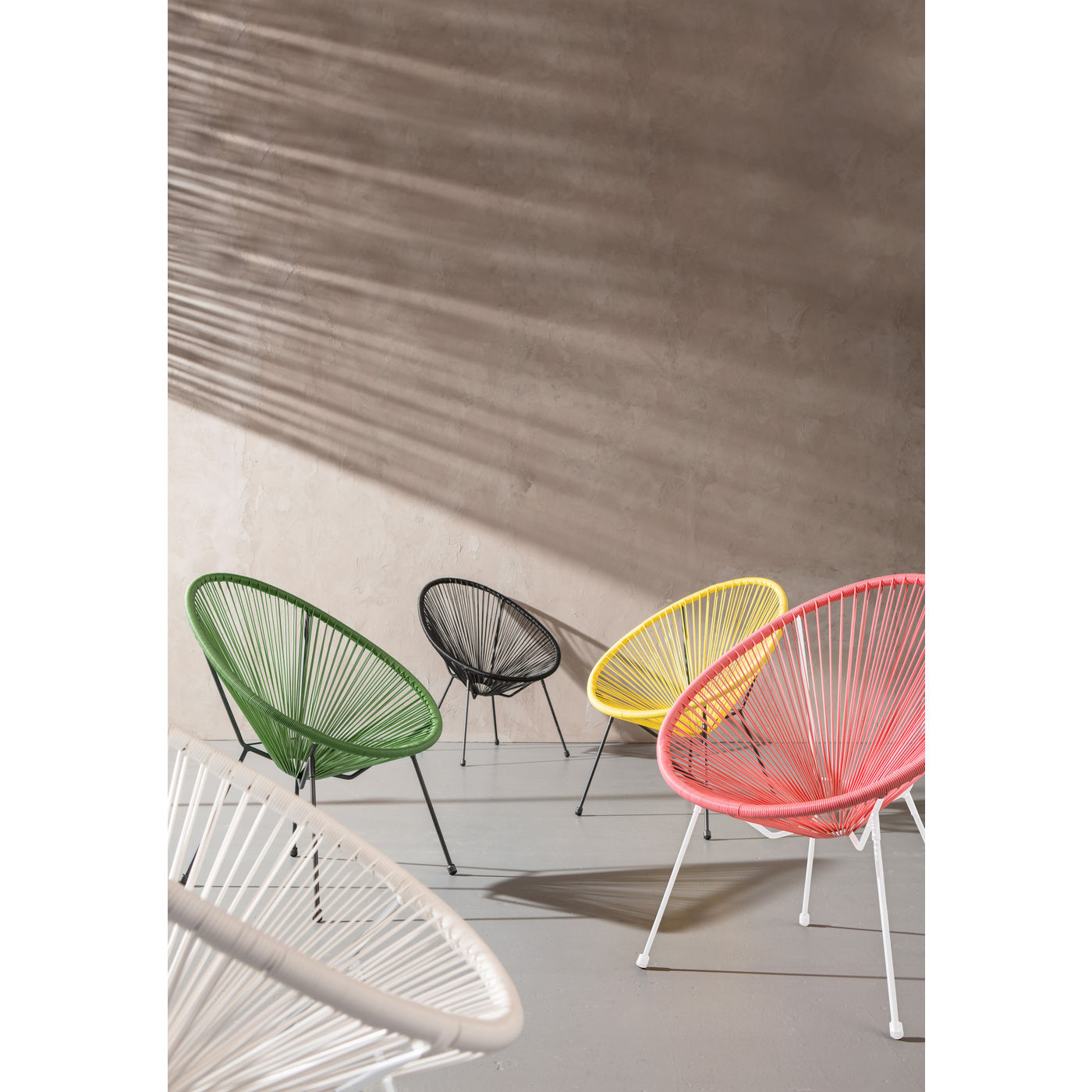 Une mise à niveau de style rapide et facile pour l’intérieur et l’extérieur - c’est notre chaise Acapulco. Le classique du design peut être facilement relooké avec une fourrure ou un oreiller et est disponible pour chaque application: comme fauteuil complémentaire au canapé, en couple en remplacement de canapé, dans la chambre à coucher et bien sûr partout à l’extérieur à l’air frais.