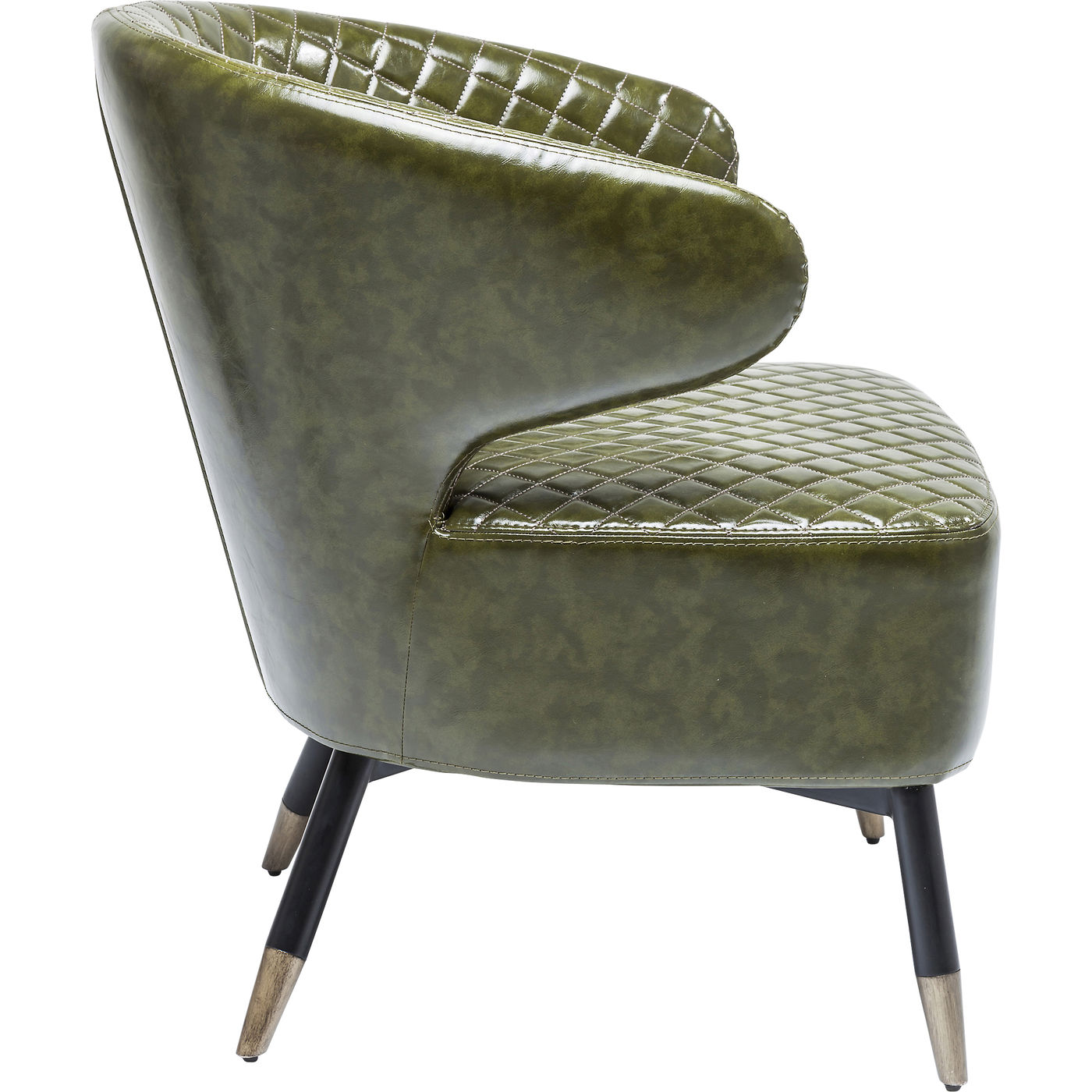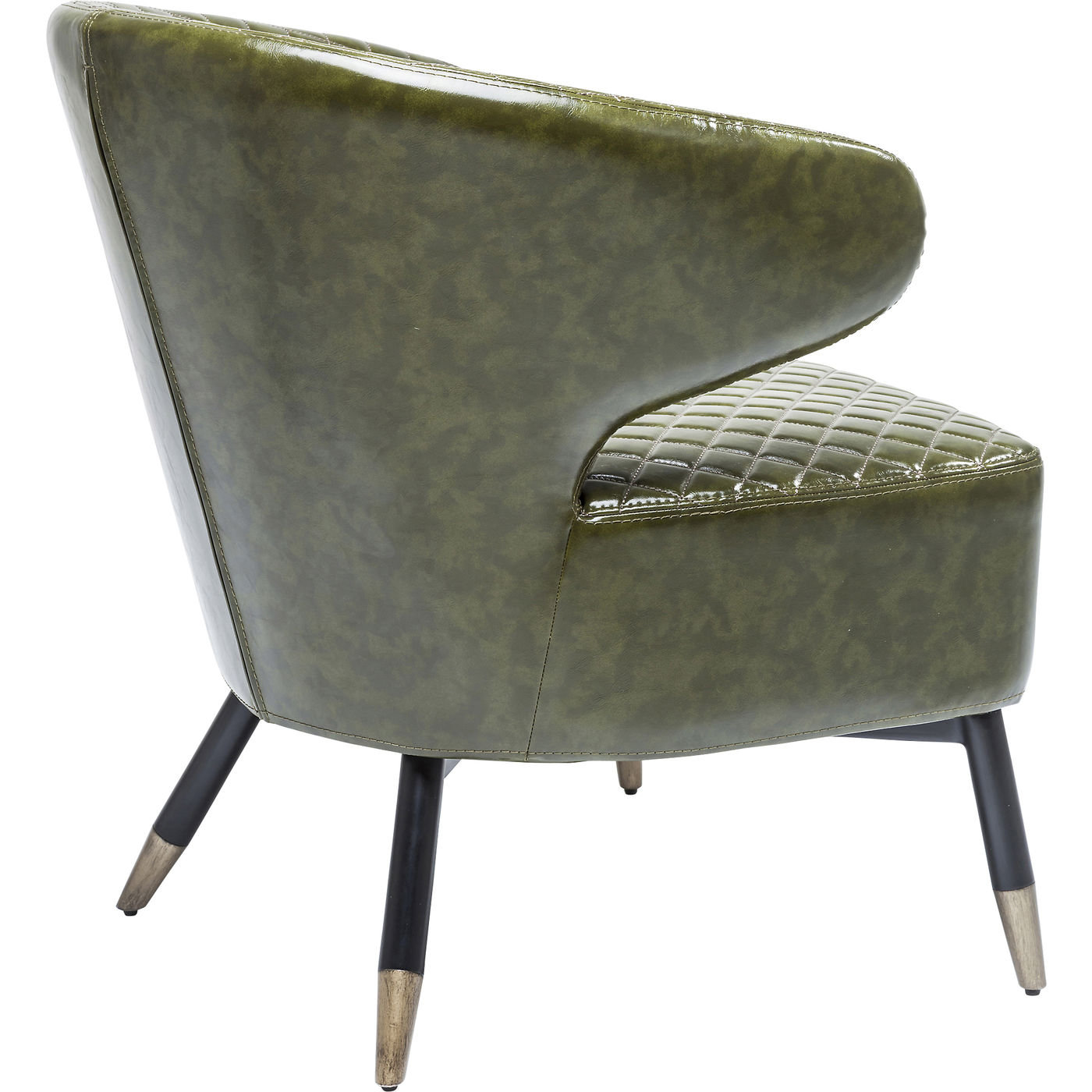 Attire immédiatement le regard avec son look rétro luxueux: la chaise cocktail vert forêt Session. Avec son matelassage diamant noble, son dossier légèrement arrondi, sa housse en cuir vintage et ses pieds fins et noirs, ce fauteuil douillet est un véritable bijou pour le salon.