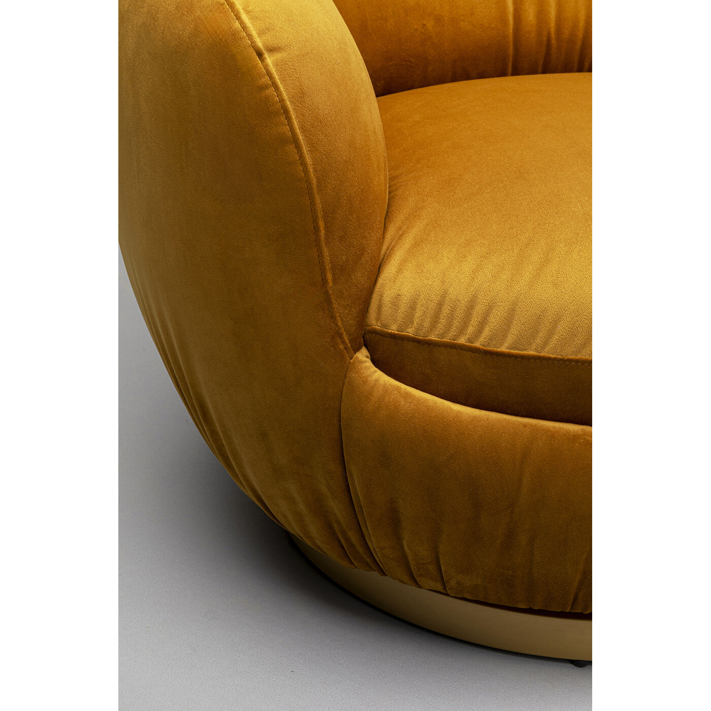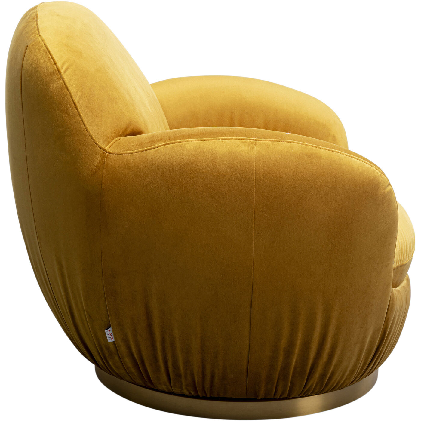 - Fauteuil pivotant jaune aspect velours, 90 x 88 x 77 centimètres (h/l/p)