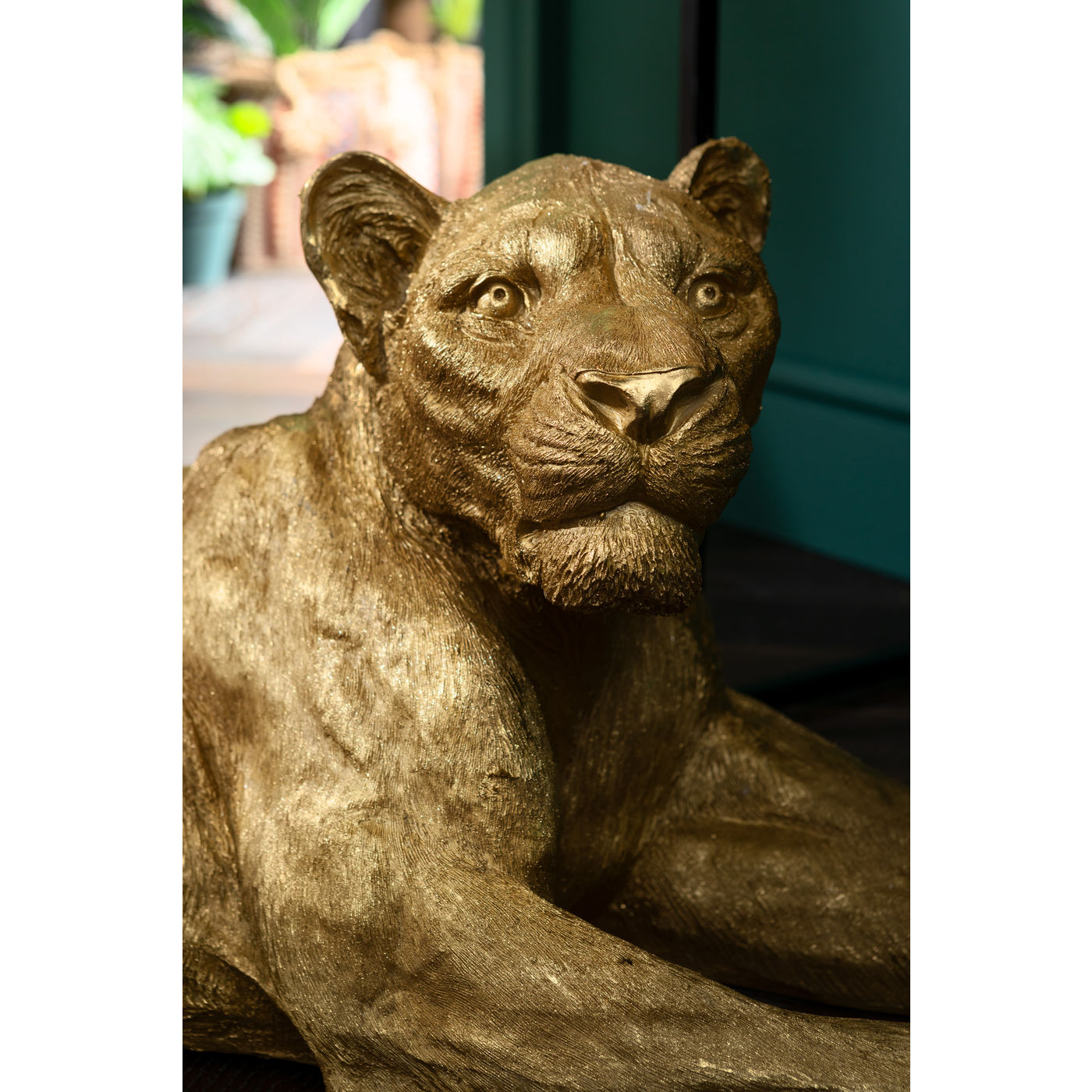 Lion objet décoratif inhabituel et détaillé en or glamour et fait à la main. Donne à l’intérieur une touche de sentiment africain et de glamour!