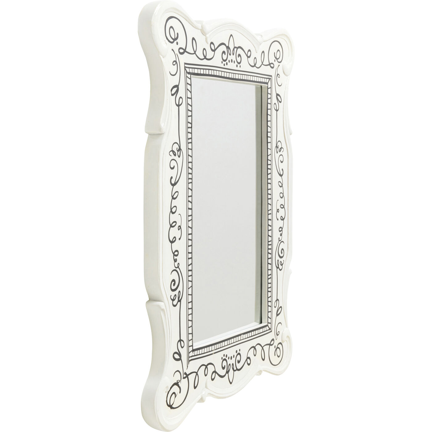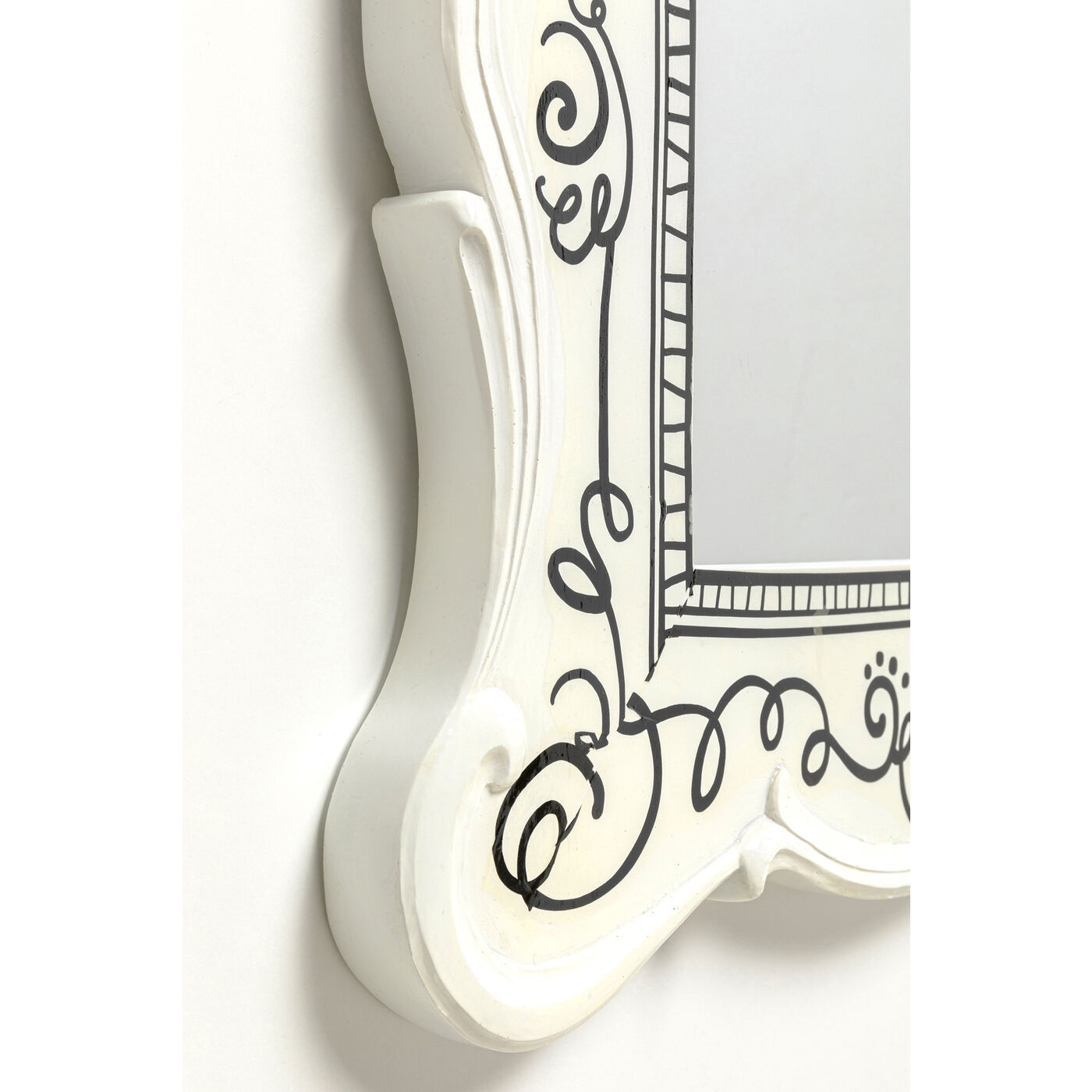 - La forme néo-baroque du cadre du miroir et les décorations illustratives en noir rendent ce miroir unique.