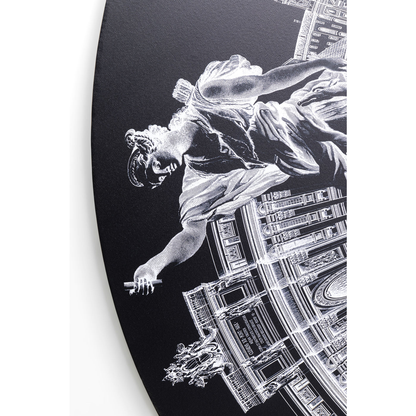 Tableau, objet déco ou art? Avec cette somptueuse décoration murale, vous pourrez relever deux défis de décoration à la fois: sa grande forme ronde vous permet de remplir votre mur avec un beau contraste noir & blanc tout en faisant preuve d’individualisme et de culture grâce à ses sculptures et ses bâtiments historiques.