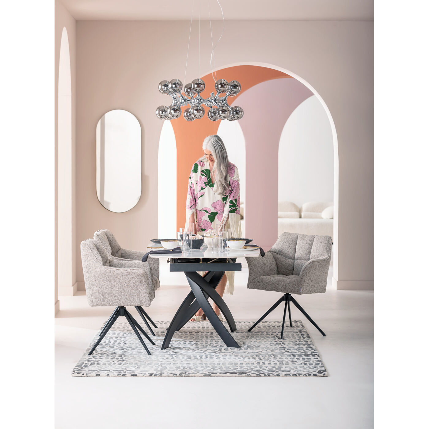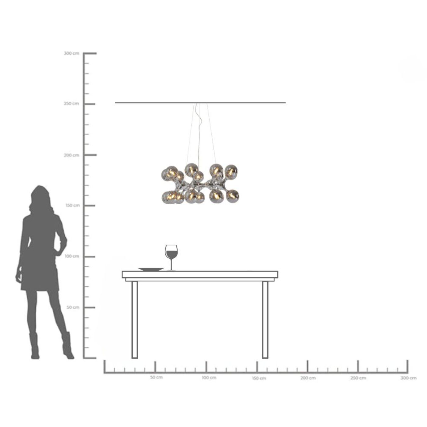 Avec ses 18 abat-jour en verre, cette lampe à suspendre ressemble à un lustre avant-gardiste. Le verre teinté reflète les sources lumineuses à l intérieur et l environnement. Ainsi, la lampe suspendue réglable en hauteur déploie un effet lumineux passionnant et se transforme aisément en sculpture lumineuse au-dessus de la table à manger, dans la chambre à coucher ou au centre du salon. 230 V, 50/60 Hz, Douille G9, Nombre d´ampoules 18, max. 28 Watts, Ampoules non incluses, Ampoules remplaçables