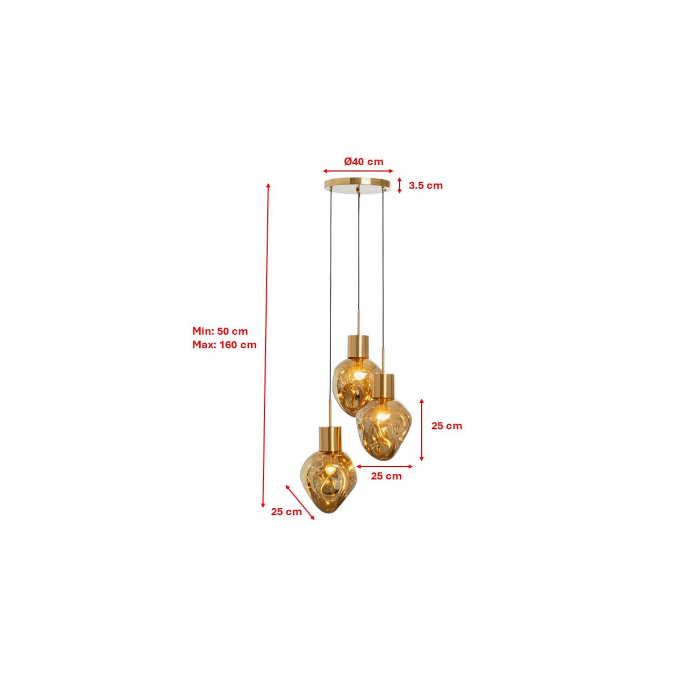 Avec cette suspension, vous n apportez pas seulement de la lumière dans l obscurité, mais aussi du design dans votre maison. Les boules de verre aux formes organiques brillent d un éclat doré, leurs formes irrégulières ont un effet sculptural. Comme la suspension ne mesure que 45 cm de profondeur, elle fait aussi bonne figure au-dessus des tables de salle à manger plus petites ou rondes. 230 V, 50/60 Hz, Douille E27, Nombre d´ampoules 3, max. 40 Watts, Ampoules non incluses, Ampoules remplaçables