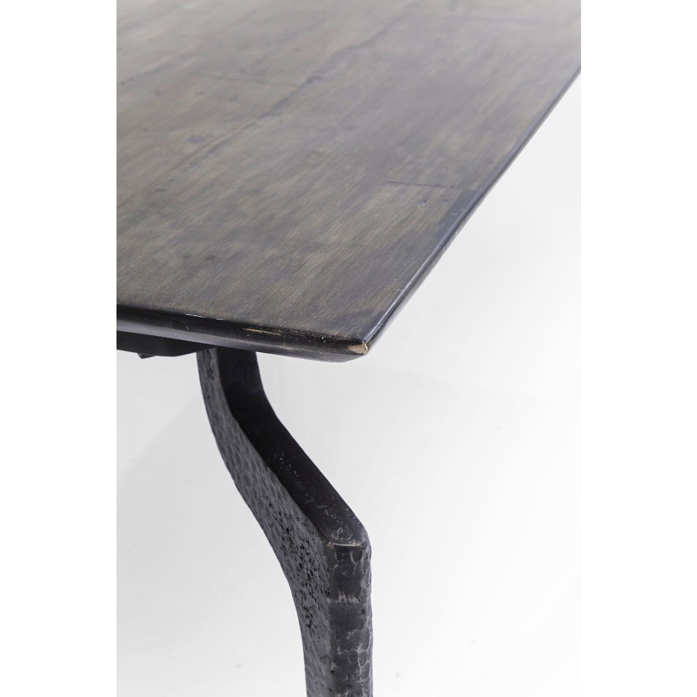 - Unique : les pieds en acier martelé aux formes raffinées et les bords de table inclinés
