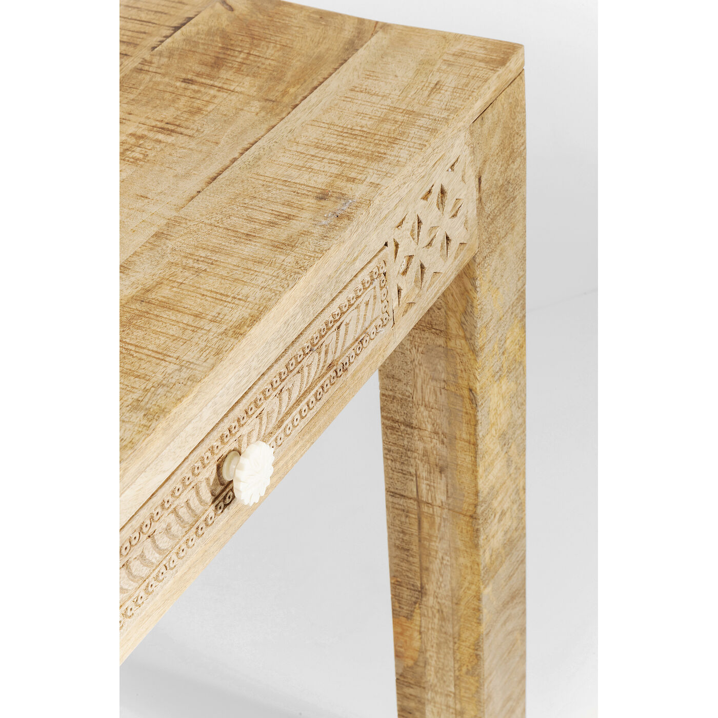 Avis aux amateurs de pays ensoleillés ! La charmante collection Finca, avec ses ornements et ses différentes couleurs de bois ne manquera pas de vous séduire. Le plateau très sobre et moderne en manguier laqué marron foncé de cette table est complété par des ornements sculptées dans le bois de différentes couleurs. Un très beau contraste qui apportera une touche estivale dans votre intérieur. Chaque exemplaire est une pièce unique.
