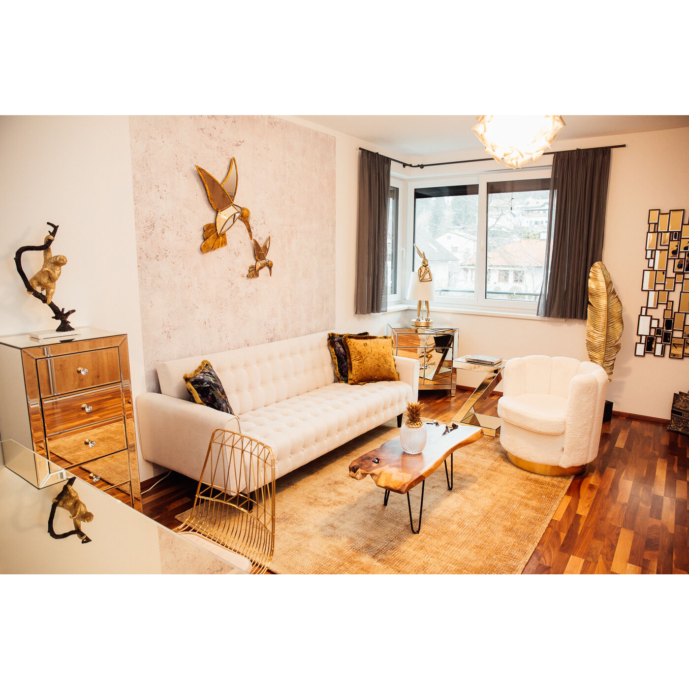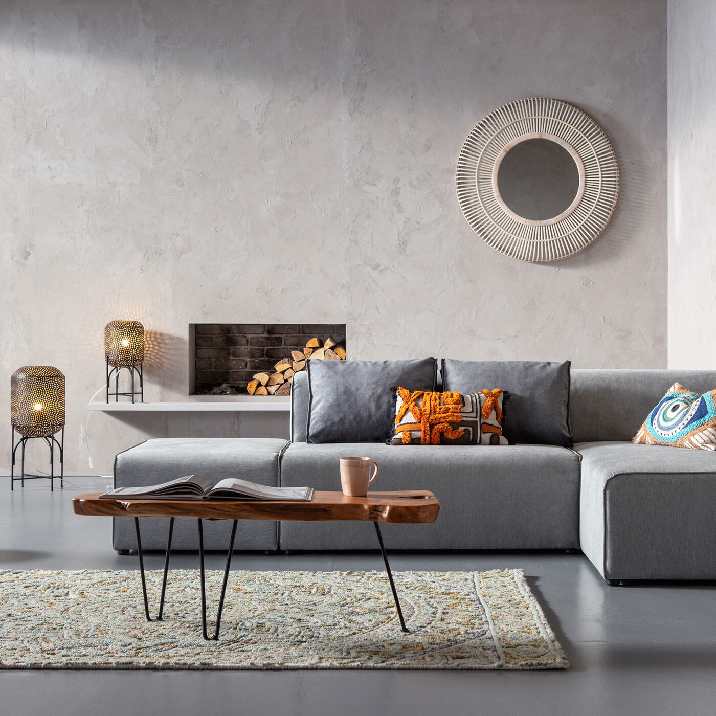 Une table occasionnelle au look originale et moderne, le jeux des formes avec son plateau constitue de morceaux de teck massif et ses pieds entremeles. Tout de blanc, elle trouvera sa place dans toutes les pieces de la maison.