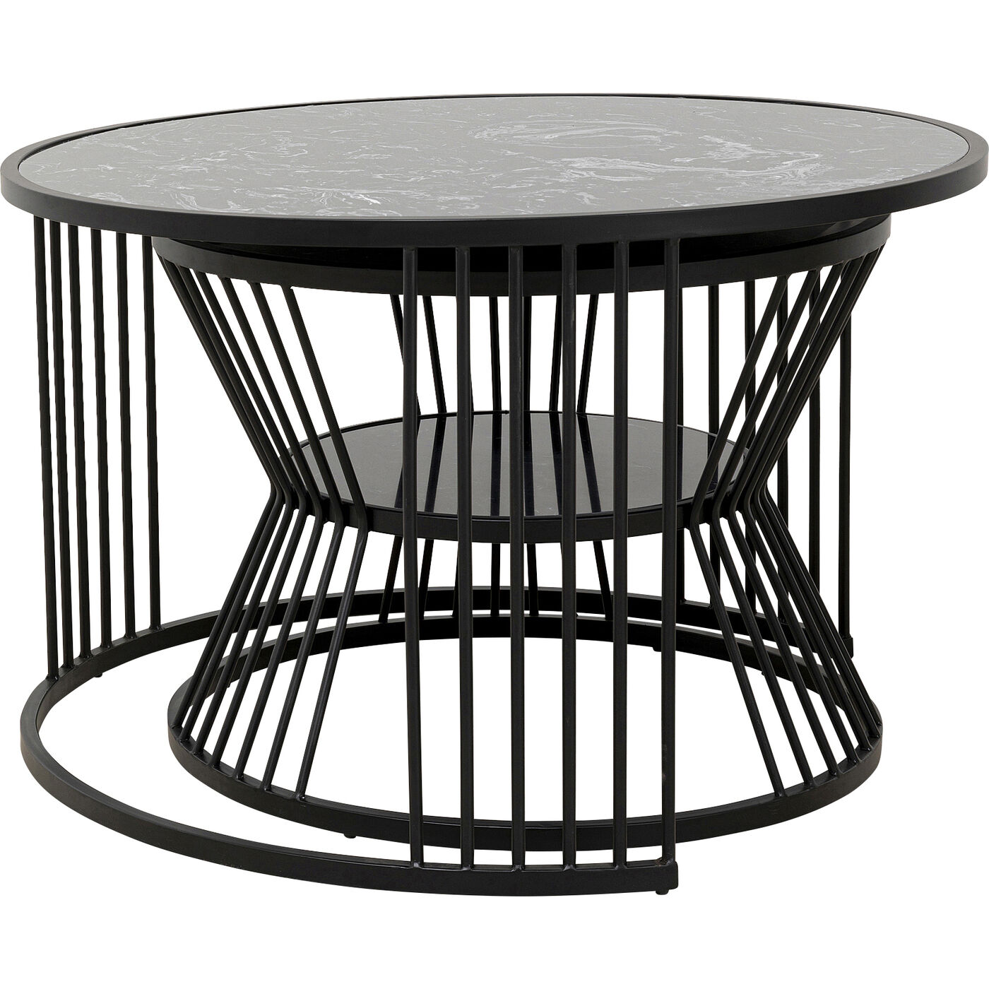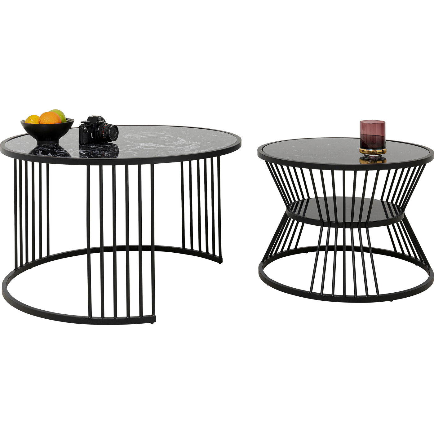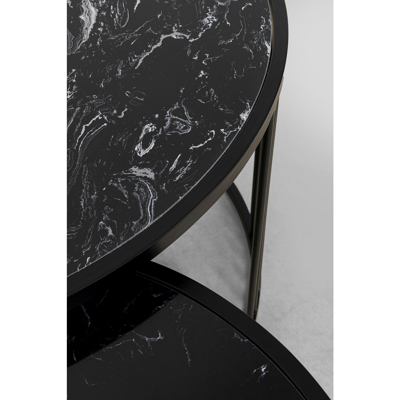 - Set de deux tables d appoint modernes en métal noir avec marbre (minéral)