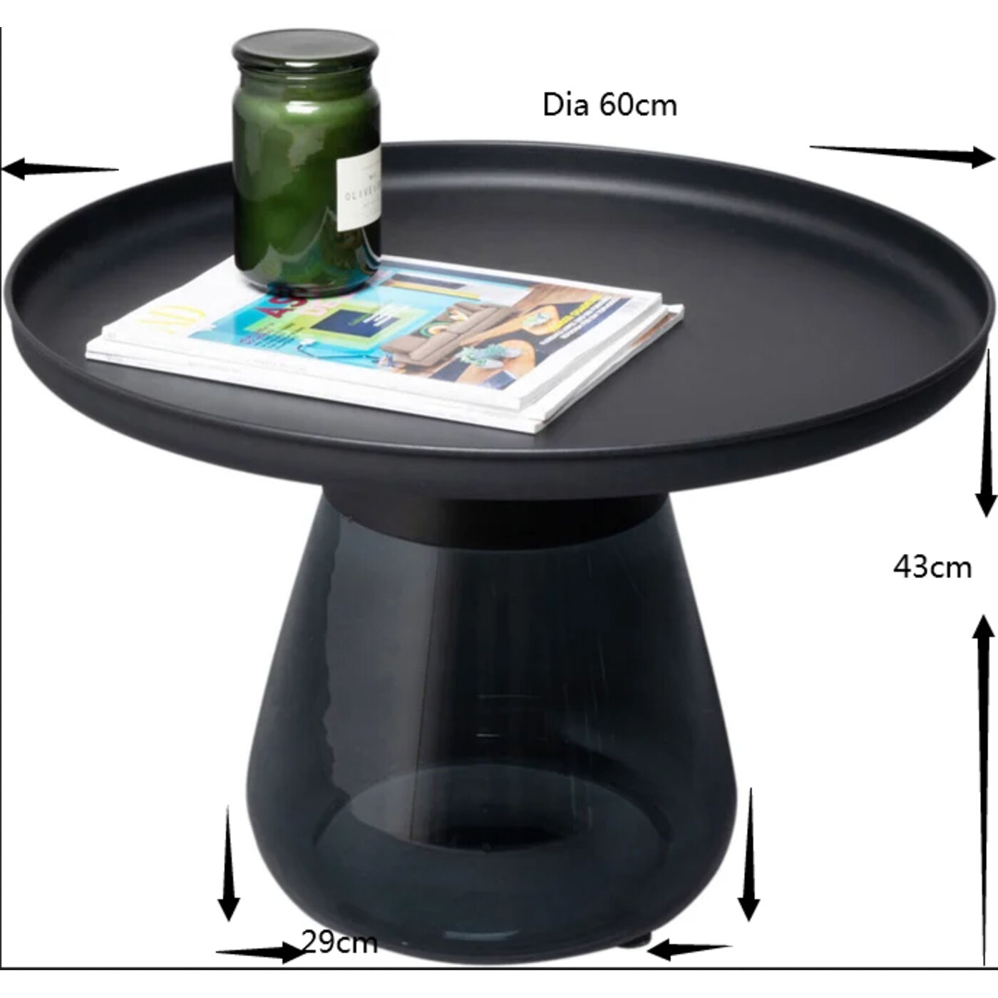 - Table d appoint ronde en métal gris foncé, 43 x 60 x 60 centimètres (h/l/p)