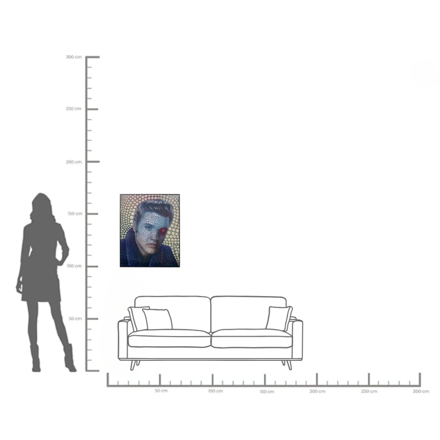 Bilddruck auf: Polyethylenterephthalat, Bild: Papier, Rahmen: Aluminium lackiert, für Wandmontage vertikal, handgearbeitet