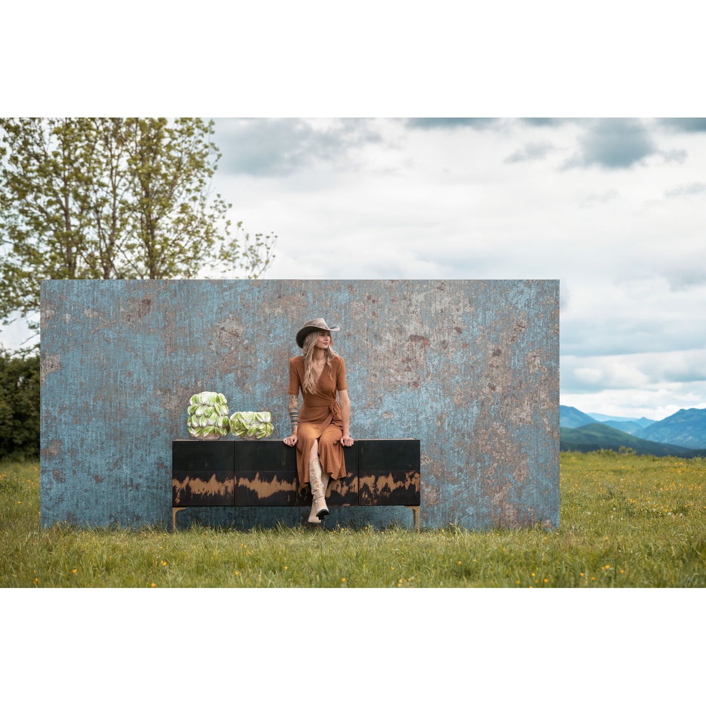 - Petit vase en céramique vert et blanc, 36.5 x 32 x 31.5 centimètres (h/l/p)