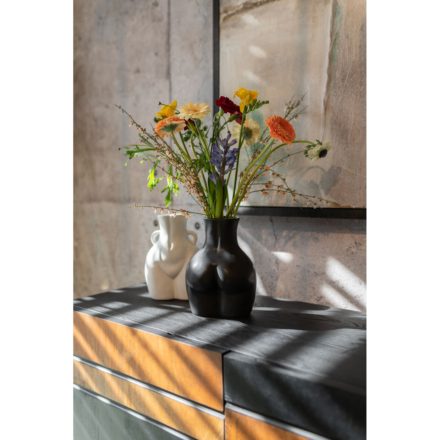 Toucher autorisé - ce vase en forme de sculpture tente de toucher, tant il est rond et harmonieux. Il est fait sur mesure pour être complètement convaincant même en tant qu’objet décoratif. Découvrez comment un vase à fleurs noires fait briller chaque couleur florale de manière fantastique. Ou donnez Donna à tous les amateurs de céramique moderne.