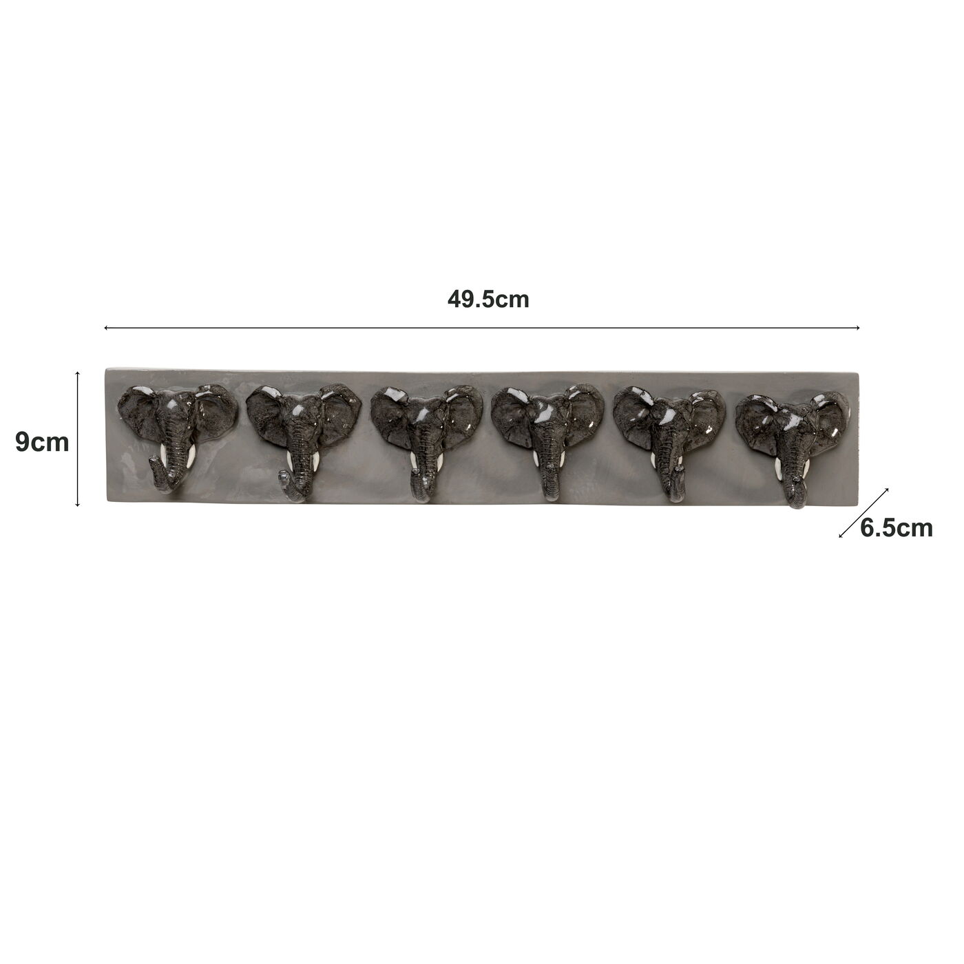Stilvoll, verspielt und voller Charakter: Diese außergewöhnliche Wandgarderobe bringt mit sechs kunstvoll gestalteten Elefantenköpfen eine Prise Safari-Flair ins Zuhause. Die fein gearbeiteten Details verleihen dem tierischen Design Ausdruck und Tiefe, während die sechs stabilen Haken praktische Ordnung im Flur, Ankleidezimmer oder Kinderbereich schaffen. Gefertigt aus langlebigem Polyresin und von Hand vollendet, ist jedes Exemplar ein Unikat mit Charme. Besonders schön wirkt die Garderobe auf hellen Wänden oder in Kombination mit natürlichen Materialien wie Rattan, Holz oder Leinen – für ein wohnliches Ambiente mit exotischer Note.