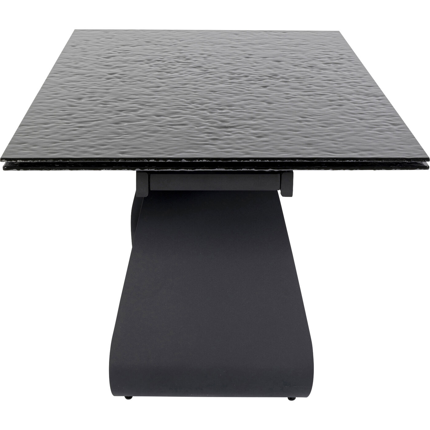 Funktion trifft exklusives Design bei diesem ausziehbaren Esstisch aus Stahl. Mit seinem Gestell in schwungvoller Form und mit der schwarzen Glasplatte, die wie eine leicht bewegte Wasseroberfläche auszieht, stellt Bellagio ein Designer-Tisch und Eyecatcher in Ihrem Esszimmer dar. Ein ausziehbarer Esstisch bietet Ihnen viele Vorteile im Essbereich. Er ermöglicht die Bewirtung einer flexiblen Anzahl von Gästen, spart Platz im Alltag, passt sich verschiedenen Anlässen an und ermöglicht eine anpassbare Tischgröße für ein angenehmes Esserlebnis.