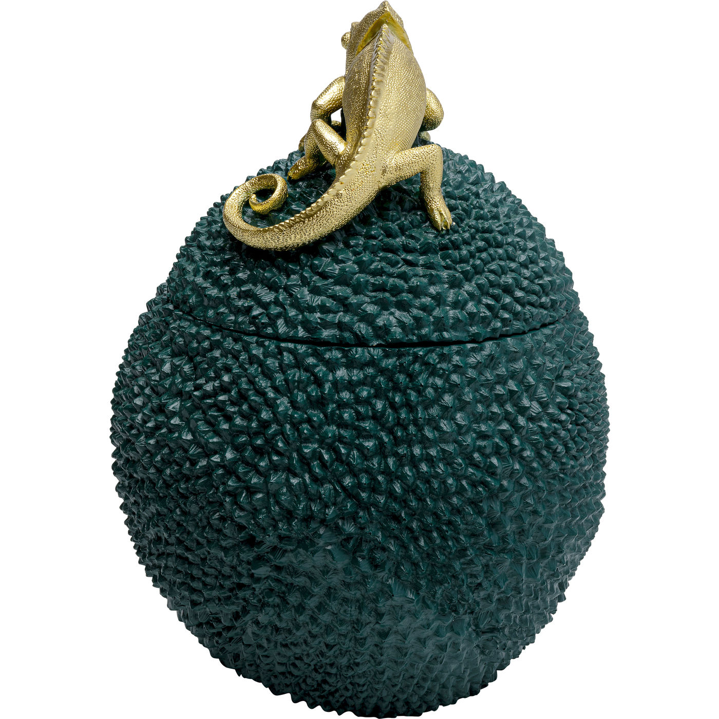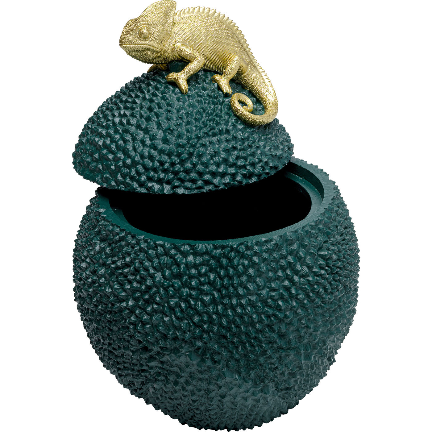 - Dunkelgrüne, dekorative Dose mit Strukturoberfläche und einem goldigen Chamäleon als Verzierung