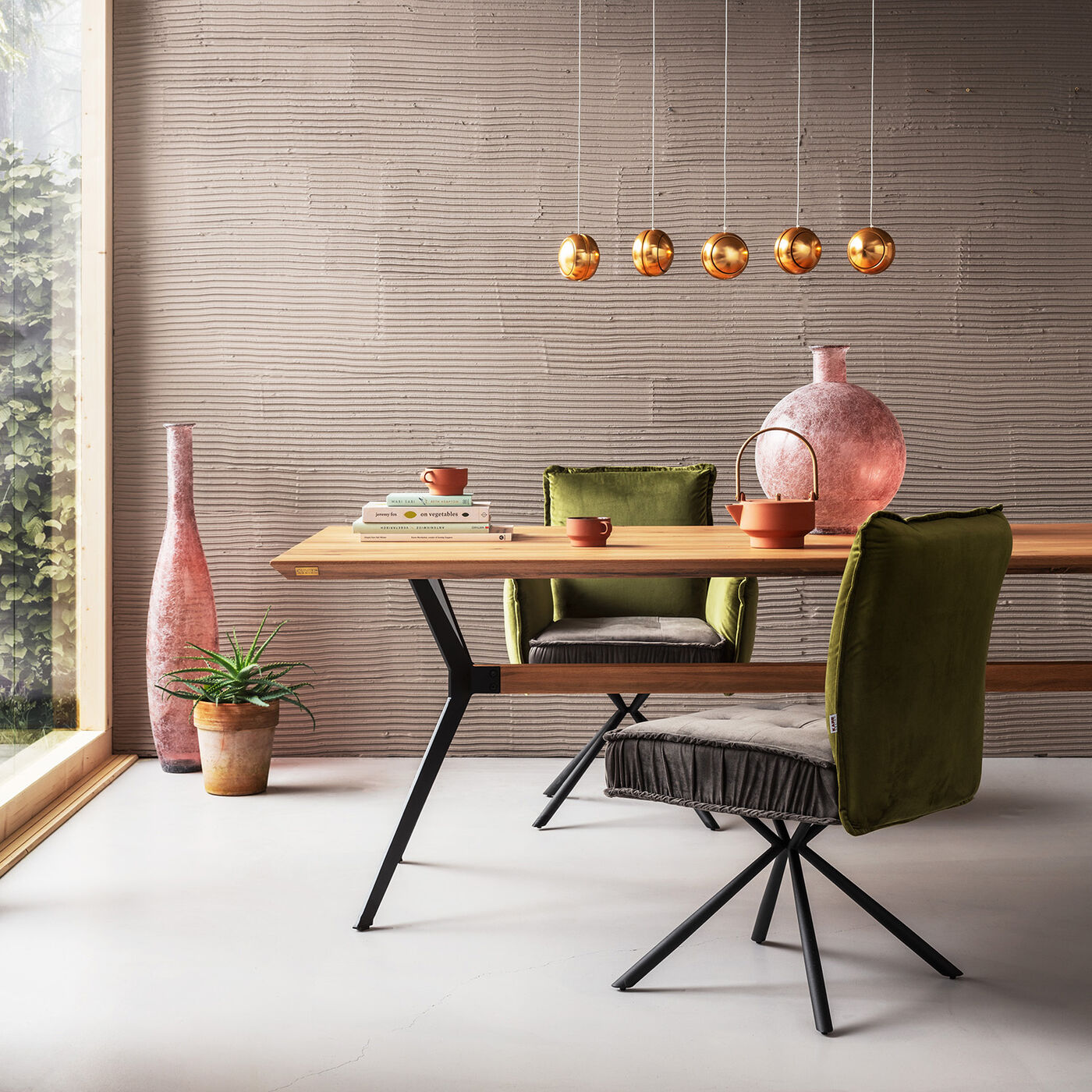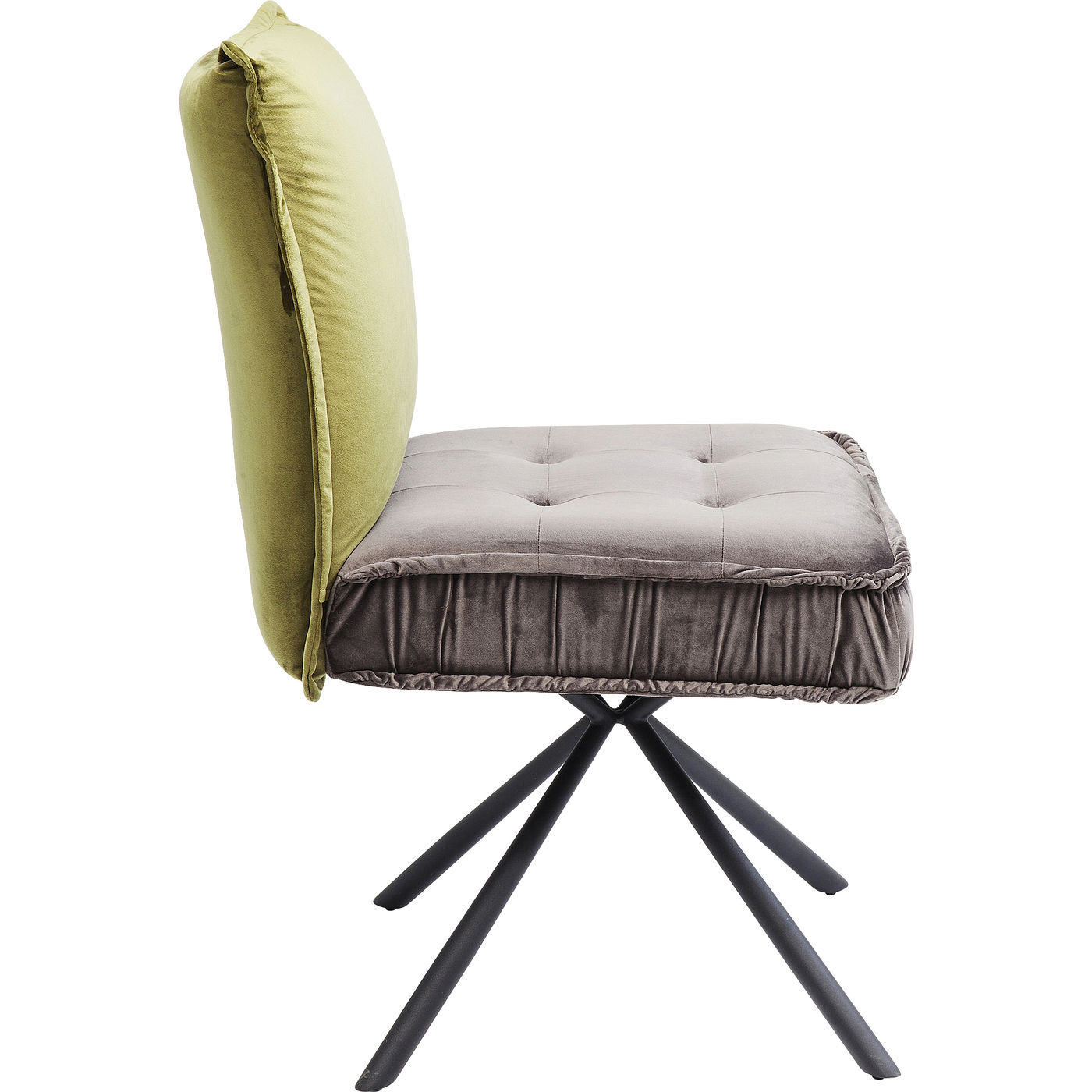 Ein Designer-Stuhl, der alle Blicke auf sich zieht. Das liegt an seiner Gestaltungsidee: Die Sitzfläche ist einem Bodenkissen mit Knopf-Heftung nachempfunden, das Rückenpolster ist in Form eines Sofakissens mit Paspelnaht gefertigt. Zusammen wird daraus ein bequemer Esszimmerstuhl, dessen Drehfunktion das Hinsetzen und Ausstehen einfach macht. Der Stuhl ohne Armlehnen lässt sich außerdem ganz einfach unter jeden Tisch schieben. Dieser originelle Stuhl eignet sich nicht nur für das Esszimmer. Als Polsterstuhl ist er auch für lange Sitzungen am Schreibtisch oder Besprechungstisch eine gute Wahl. Sitzhöhe 49cm und bis 120 kg belastbar.