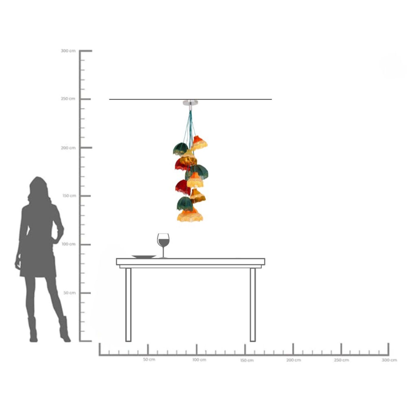- Bunte Hängeleuchte mit 10 Schirmen, 125 x 45 x 45 Zentimeter (H/B/T)