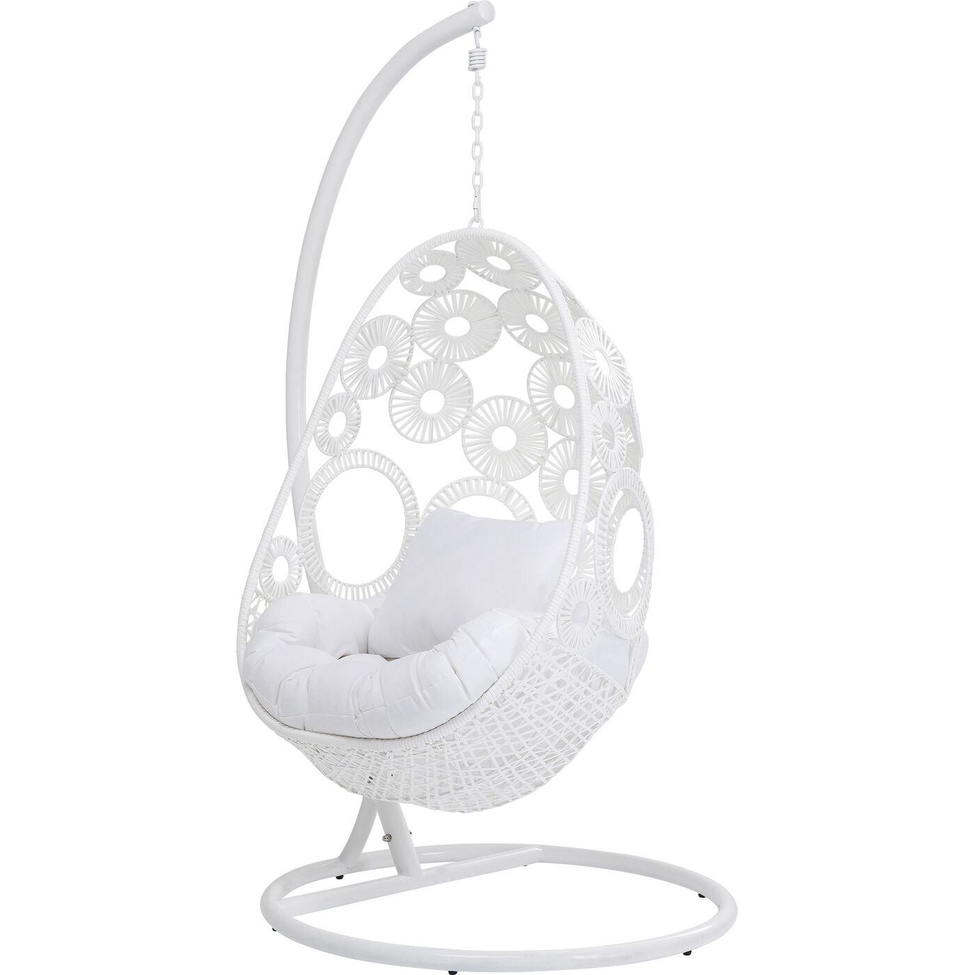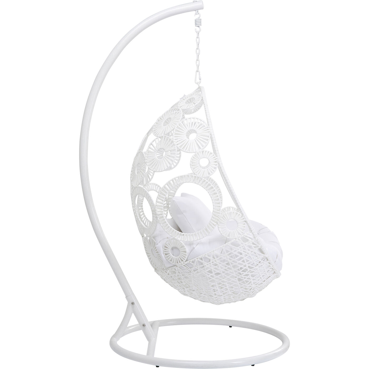- Cooler, weißer Hängesessel im Boho-Style, der auch drinnen jedem Wohnzimmer-Sessel Konkurrenz macht