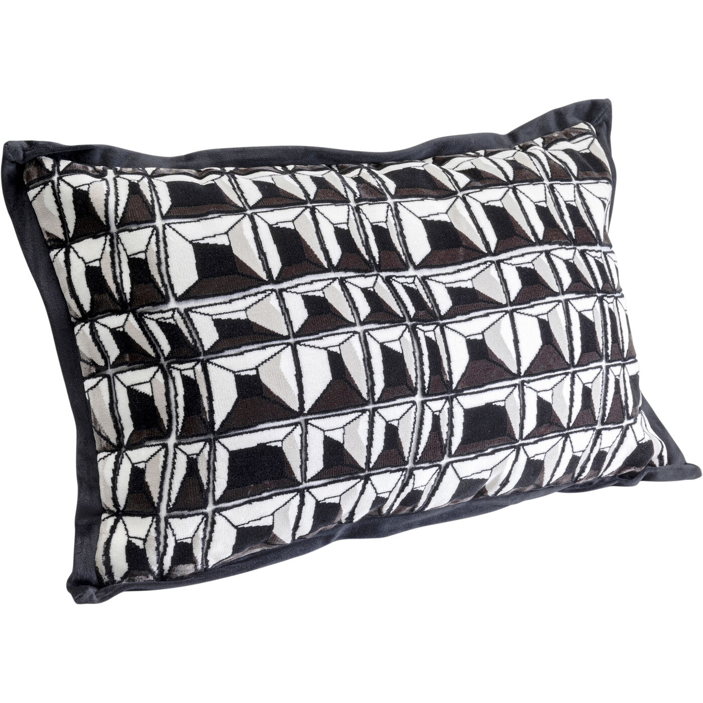 - Rechteckiges, schwarzes Kissen mit Muster, 30 x 50 x 10 Zentimeter (H/B/T)