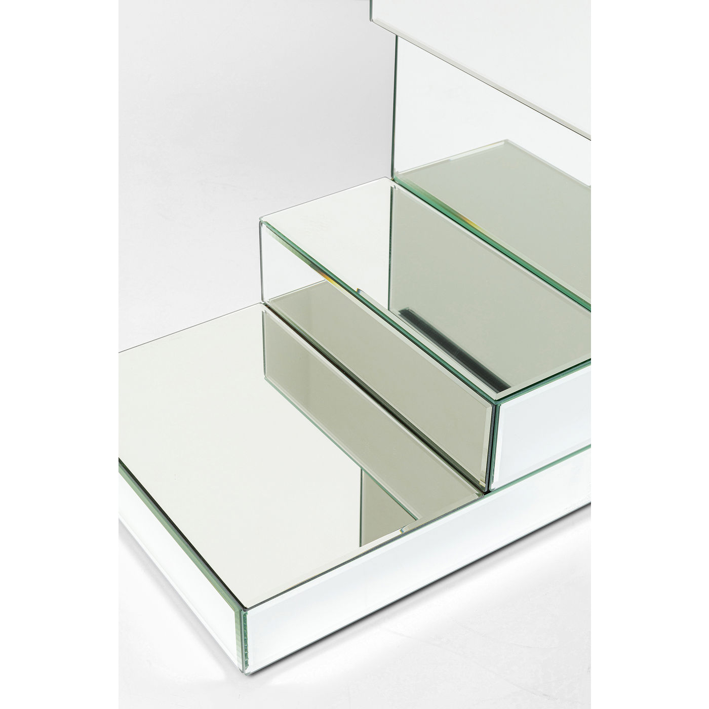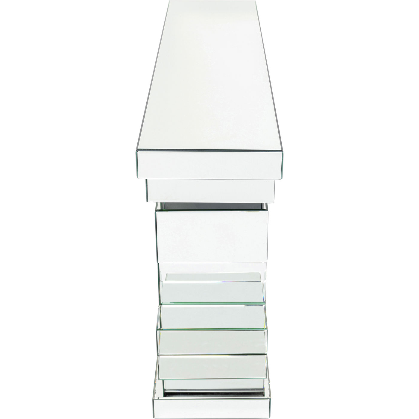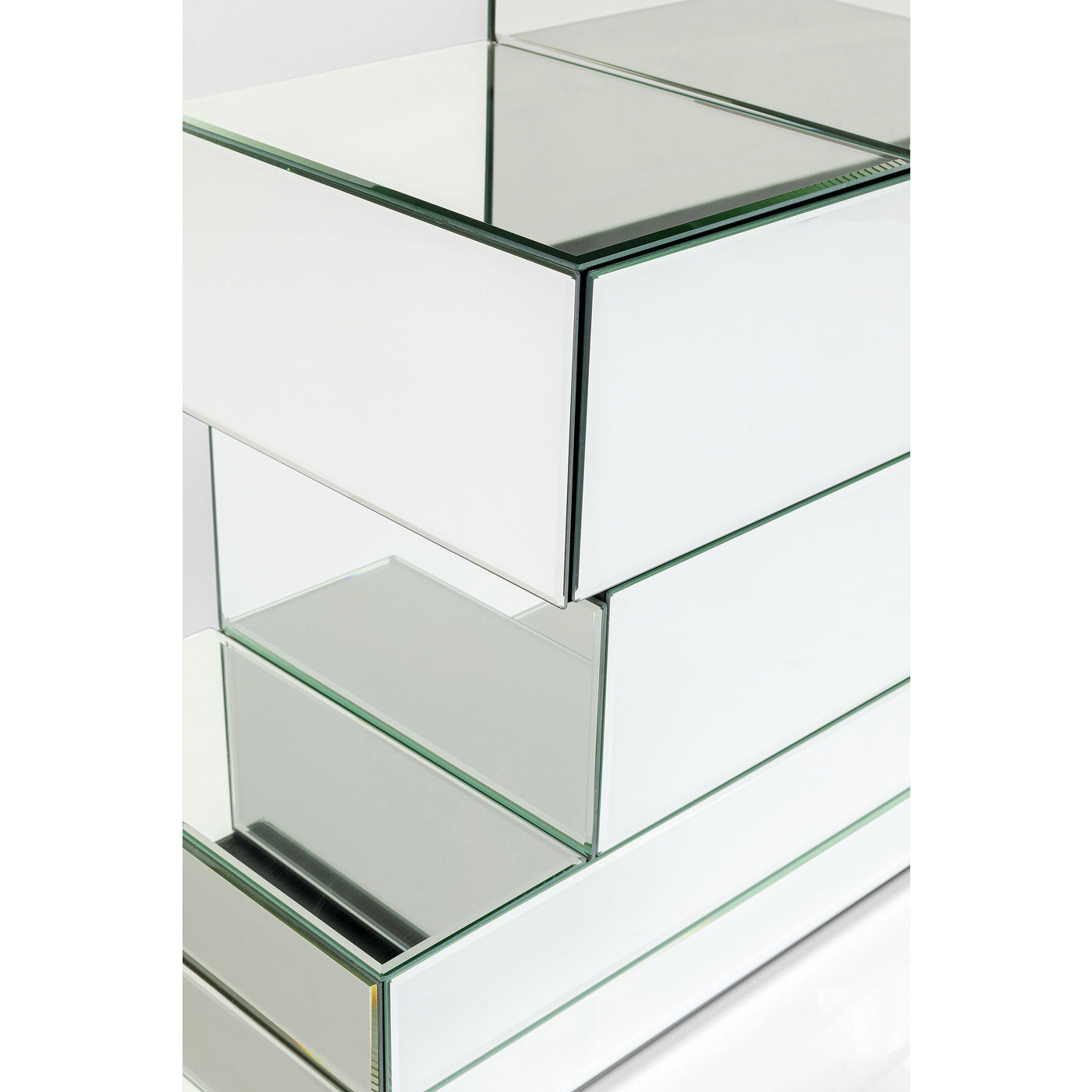Ist das Kunst – oder darf das benutzt werden? Beides! Denn diese sieben verspiegelten Kuben ergeben eine Konsole – eine strahlend schöne Konsole, ein Showpiece und Luxus pur! Mit ihrer Breite von anderthalb Metern bietet sie viel Stellfläche für die Inszenierung Ihrer Lieblingsobjekte. Außerdem verbirgt diese Spiegelkonsole auf äußerst raffinierte Art Stauraum: In drei Schubladen verschwindet jede Menge Kleinkram. Wie praktisch!