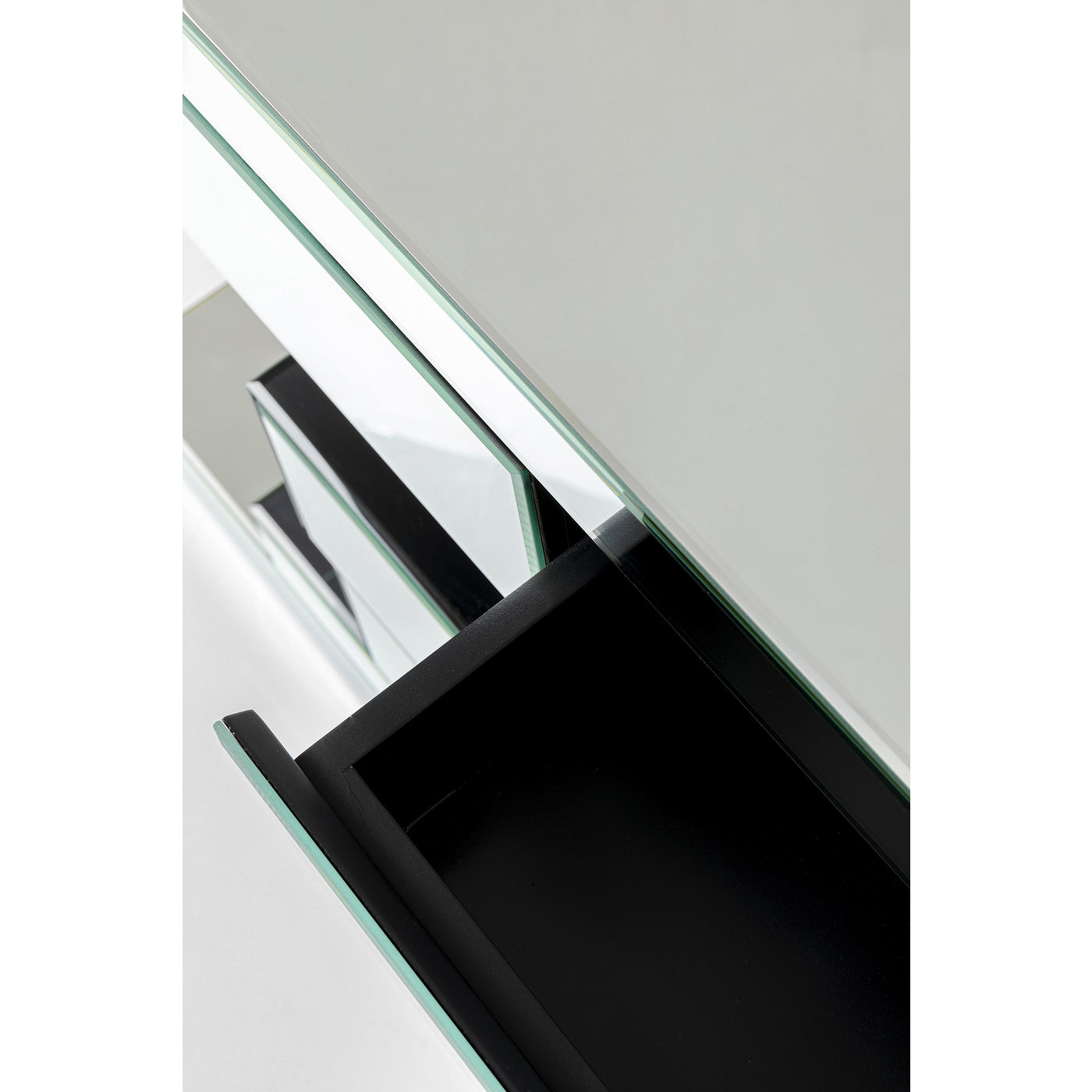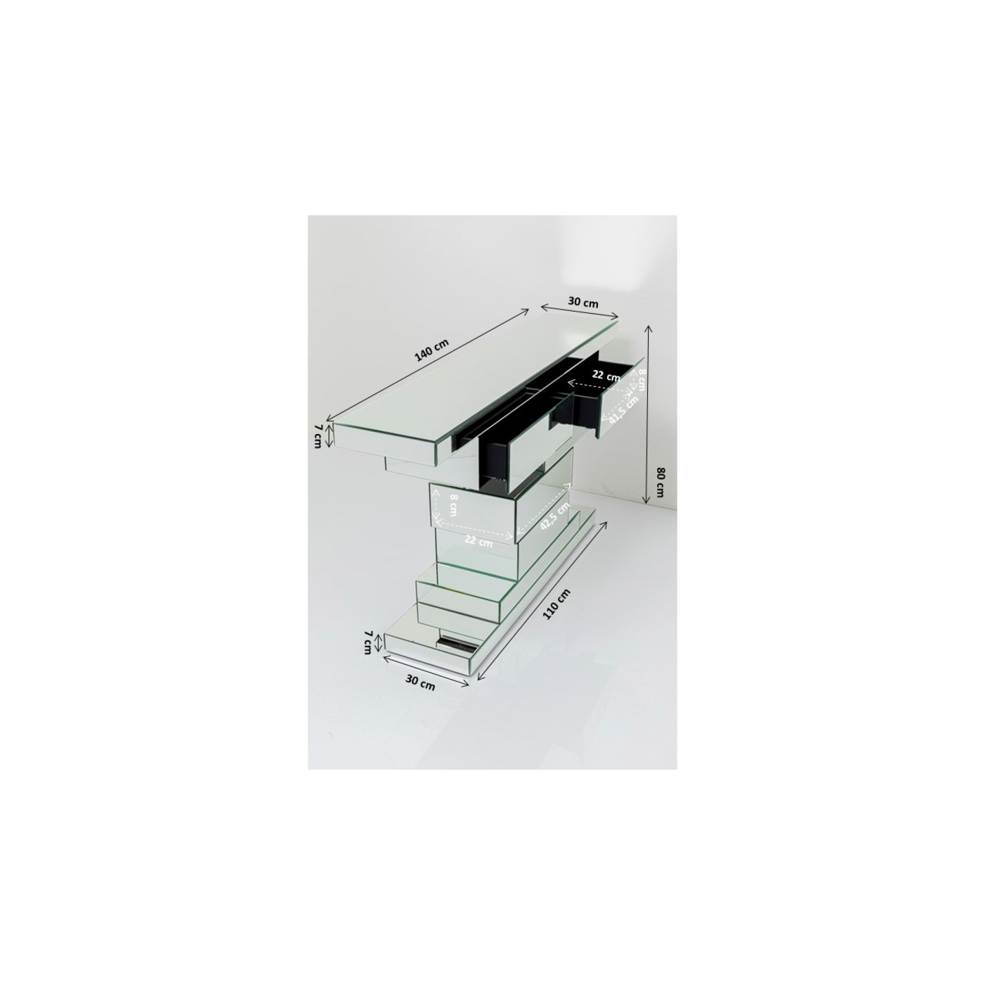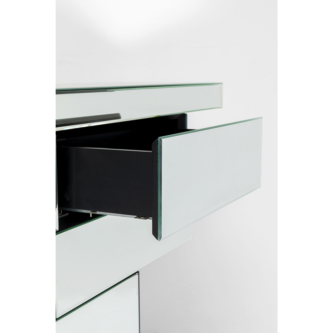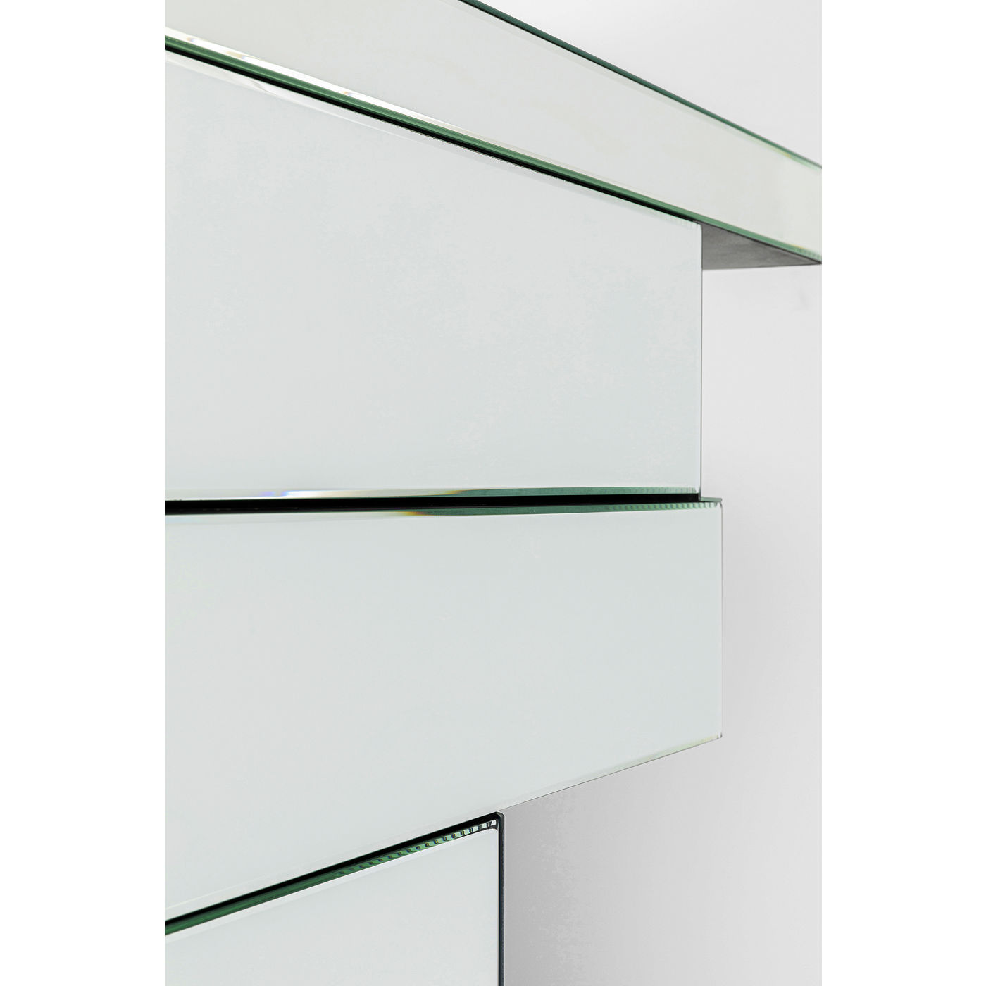 Ist das Kunst – oder darf das benutzt werden? Beides! Denn diese sieben verspiegelten Kuben ergeben eine Konsole – eine strahlend schöne Konsole, ein Showpiece und Luxus pur! Mit ihrer Breite von anderthalb Metern bietet sie viel Stellfläche für die Inszenierung Ihrer Lieblingsobjekte. Außerdem verbirgt diese Spiegelkonsole auf äußerst raffinierte Art Stauraum: In drei Schubladen verschwindet jede Menge Kleinkram. Wie praktisch!