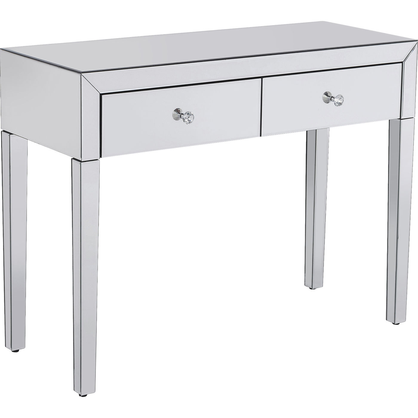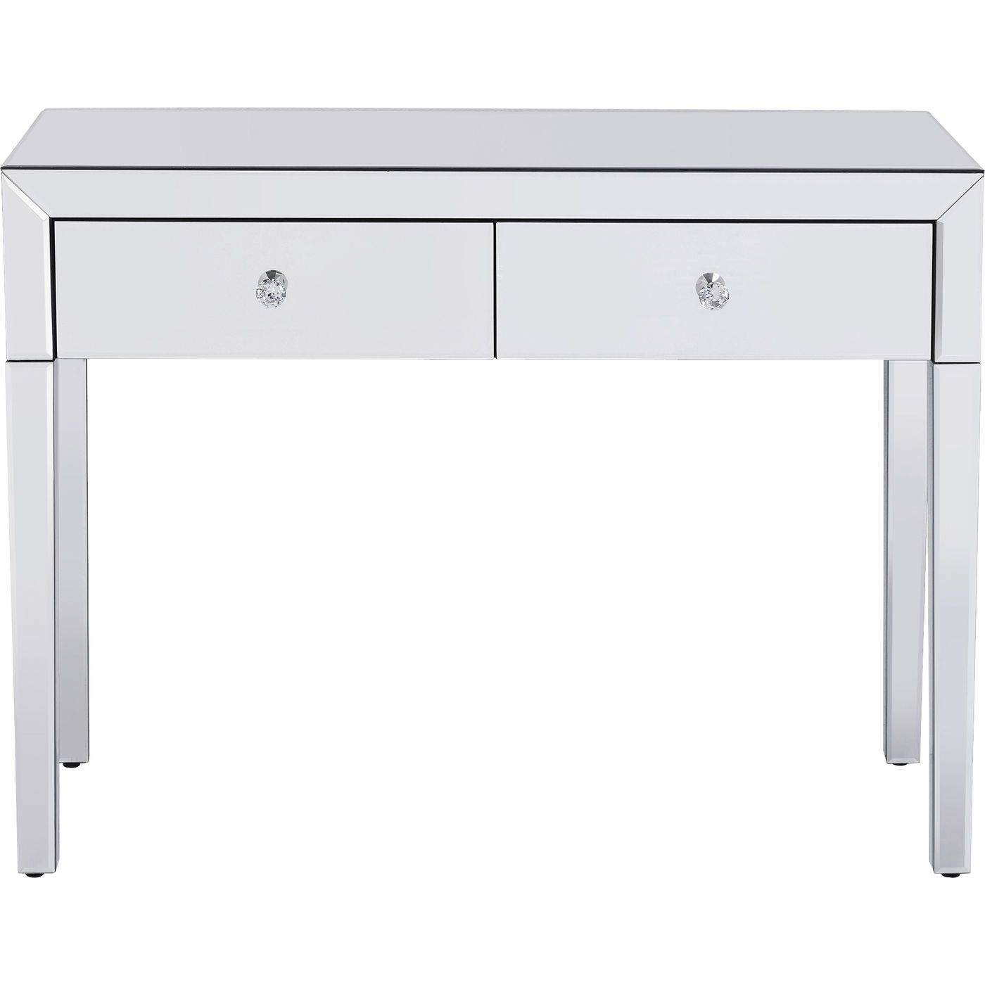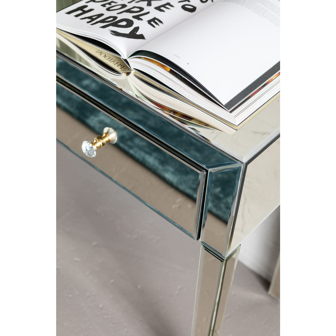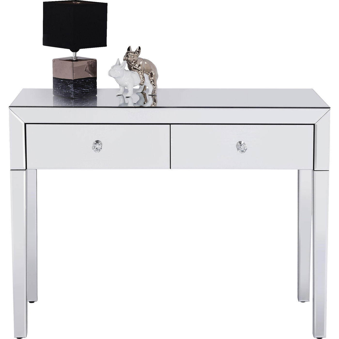 Verspiegelte Flächen, facettierte Griffe und gerade Linien prägen den edlen Look der Konsole Luxury. Zwei Schübe dienen der Aufbewahrung von Schriftstücken und anderen Gegenständen. Praktisch und stylish zugleich.