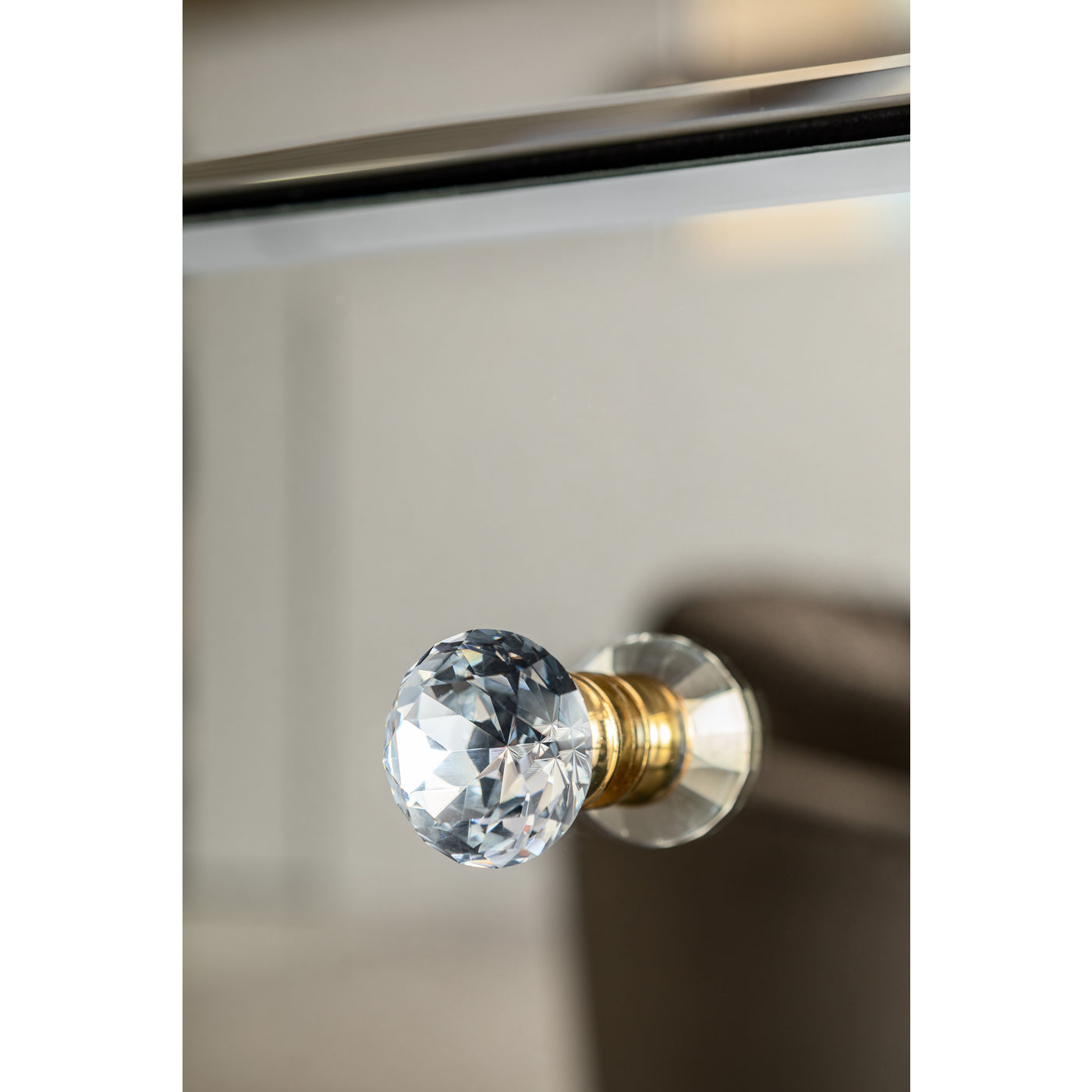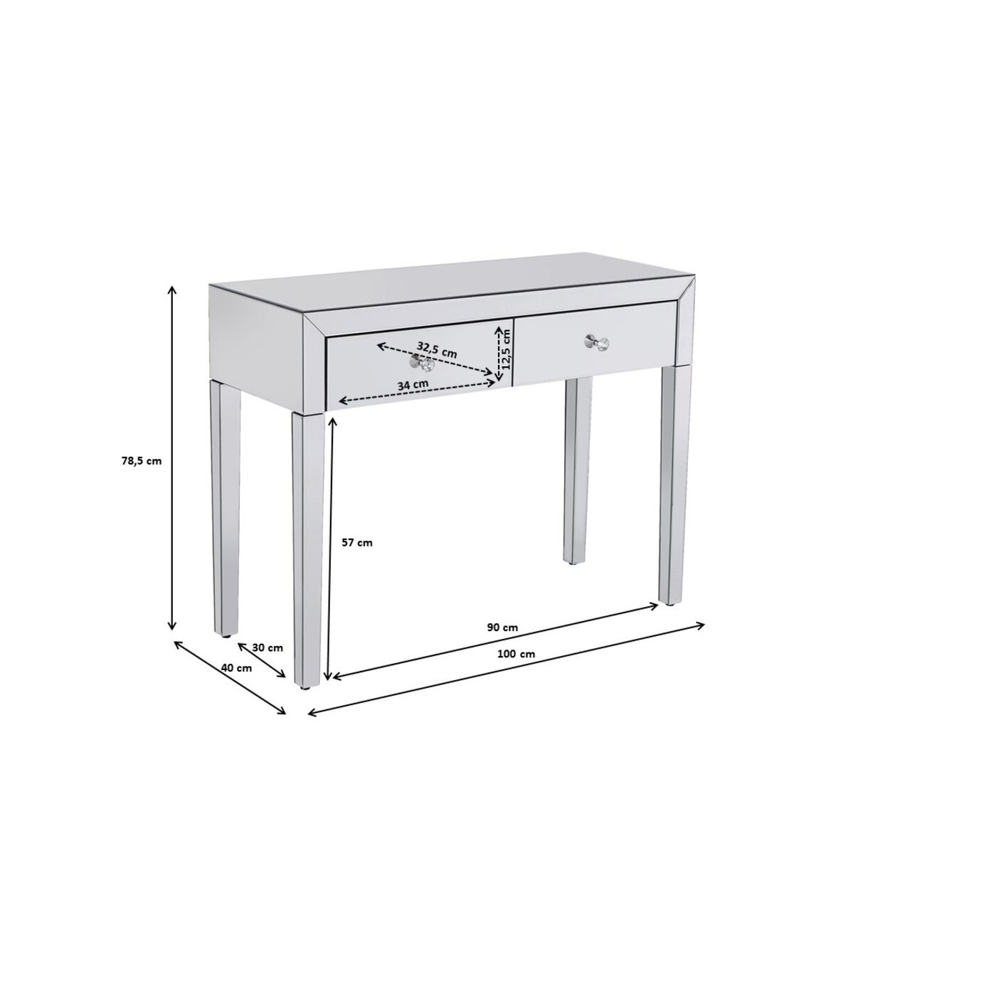 - Verspiegelte Konsole mit edlem Facettenschliff, Glasgriffen und zwei praktischen Schubladen