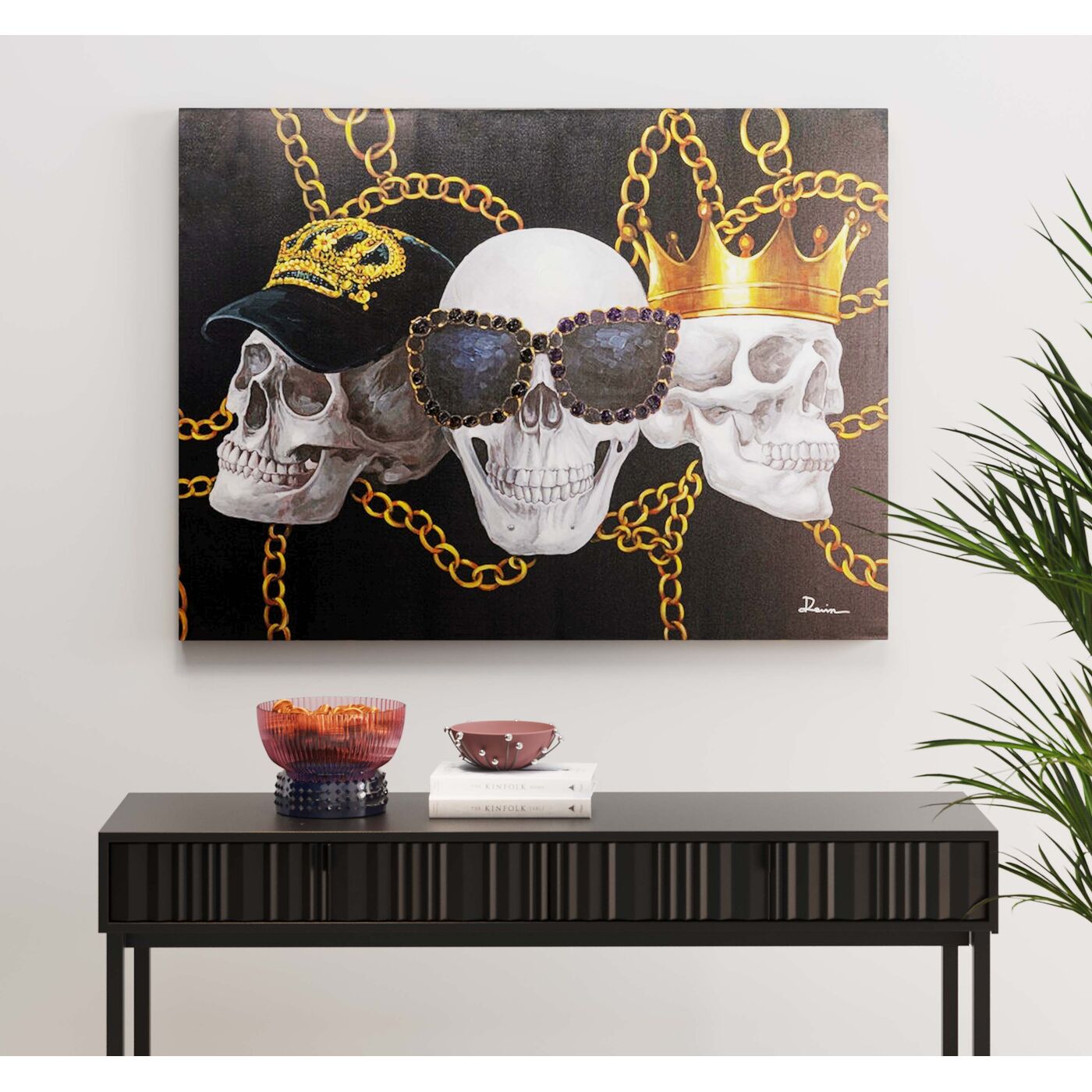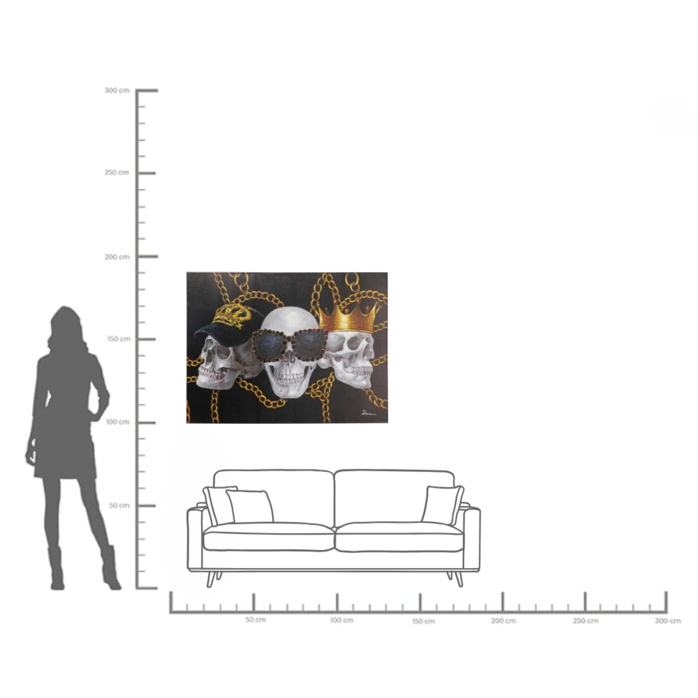 - XL Leinwandbild mit Schädelmotiven, Schwarz und Gold, 120x90cm