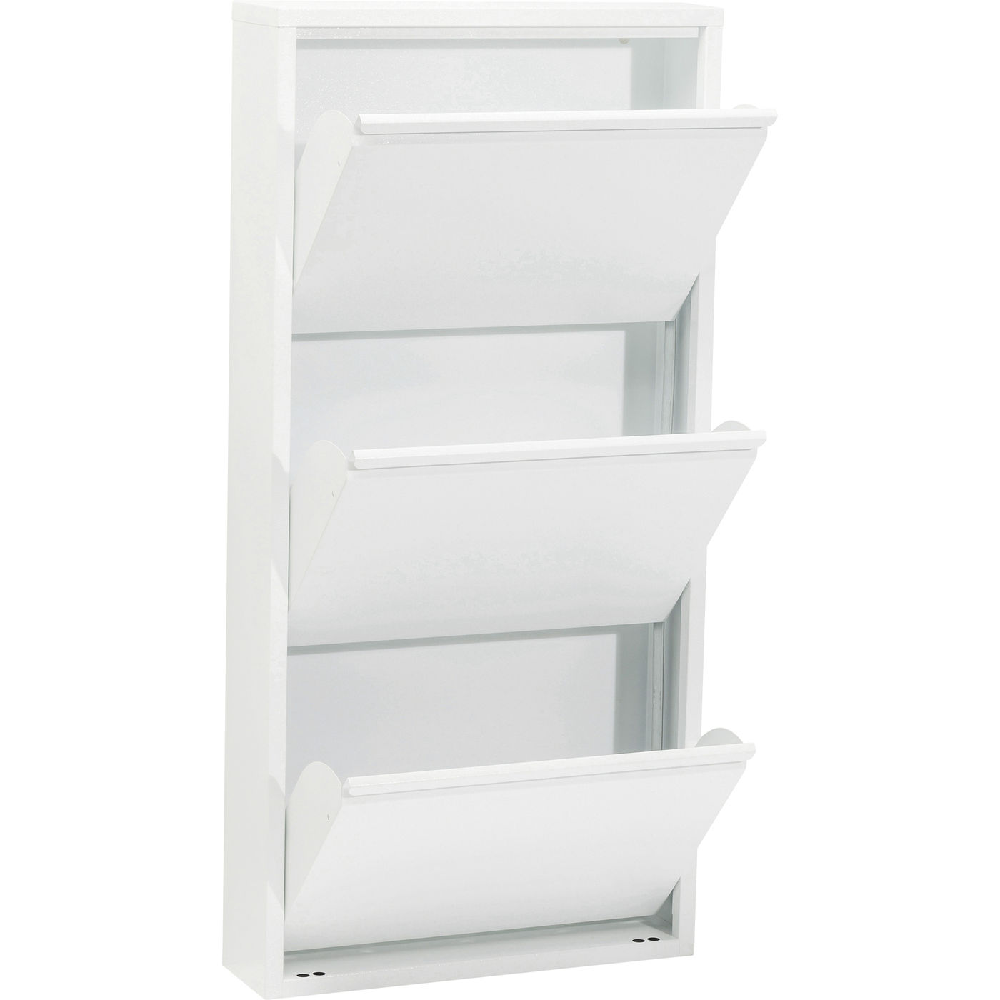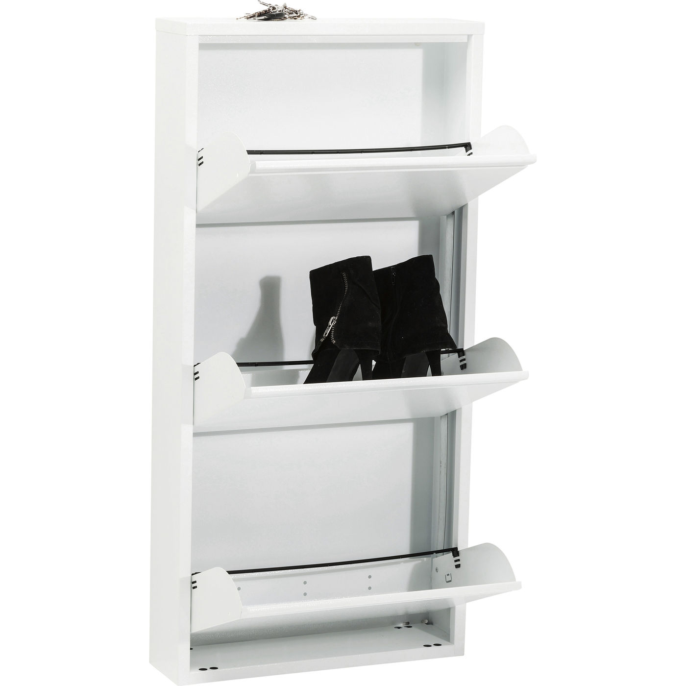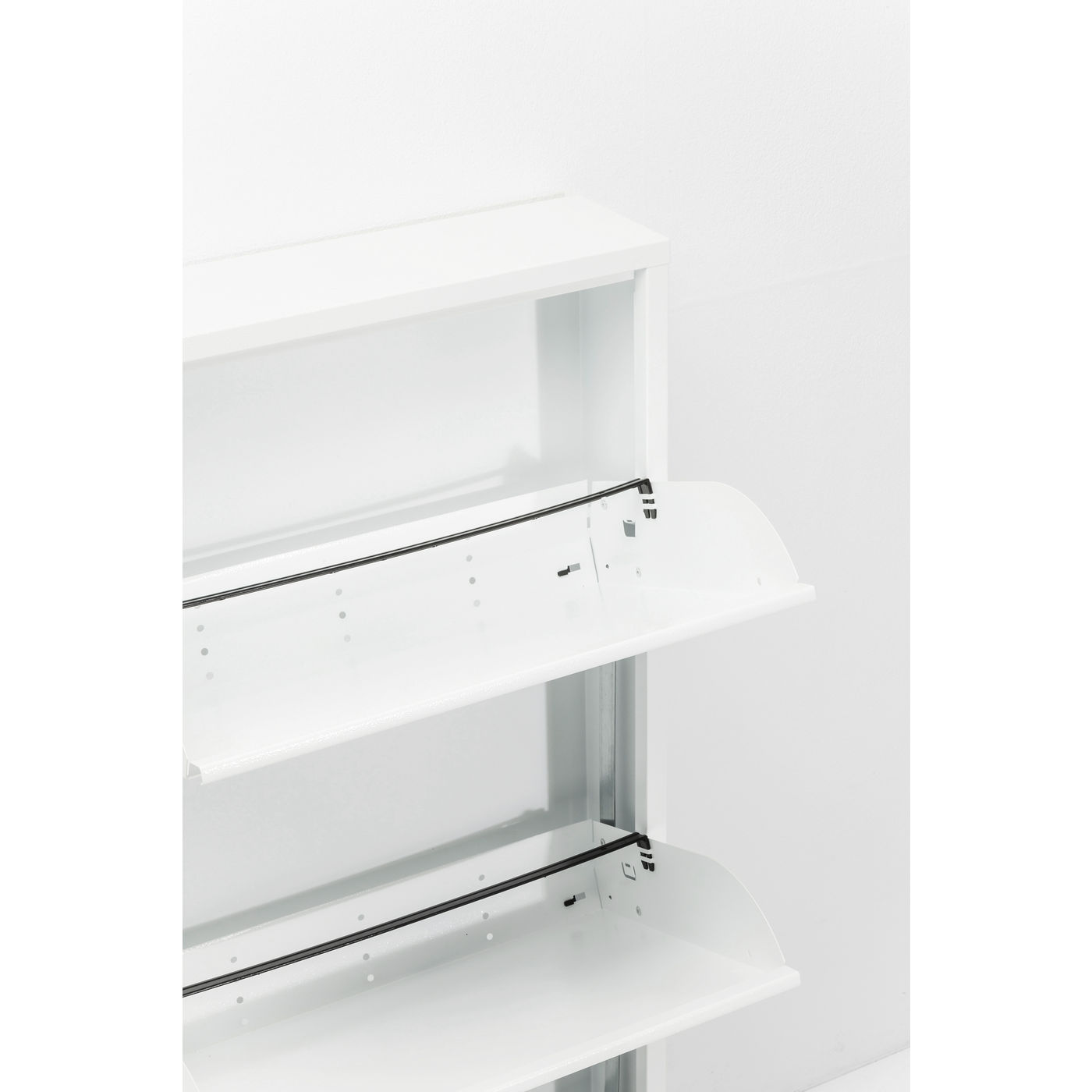 - Weißer Schuhschrank in modernem Stahldesign mit drei Kippfächern für mindestens 6 Paar Schuhe, je nach Modell und Größe