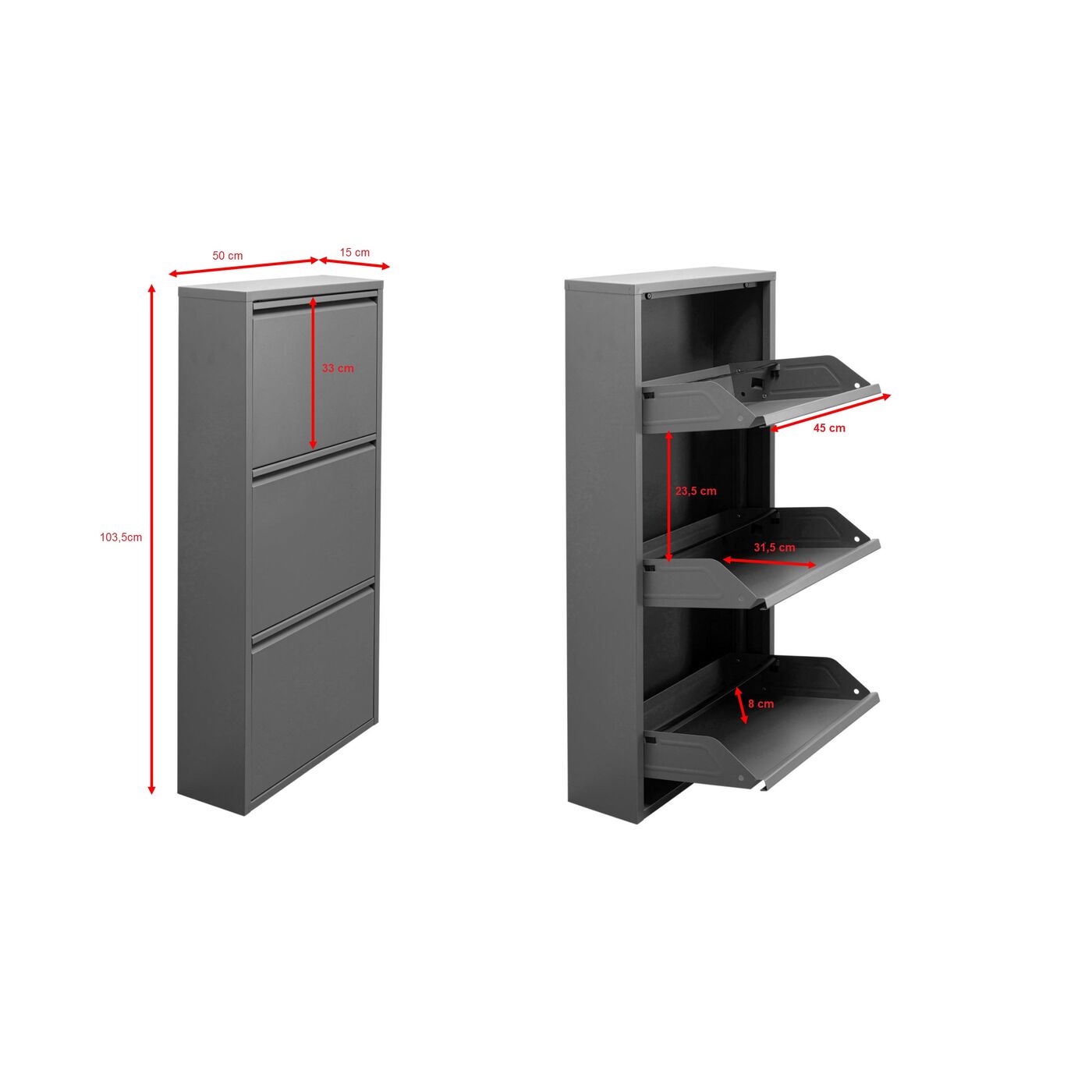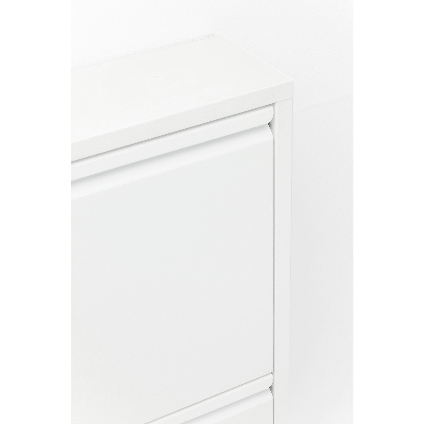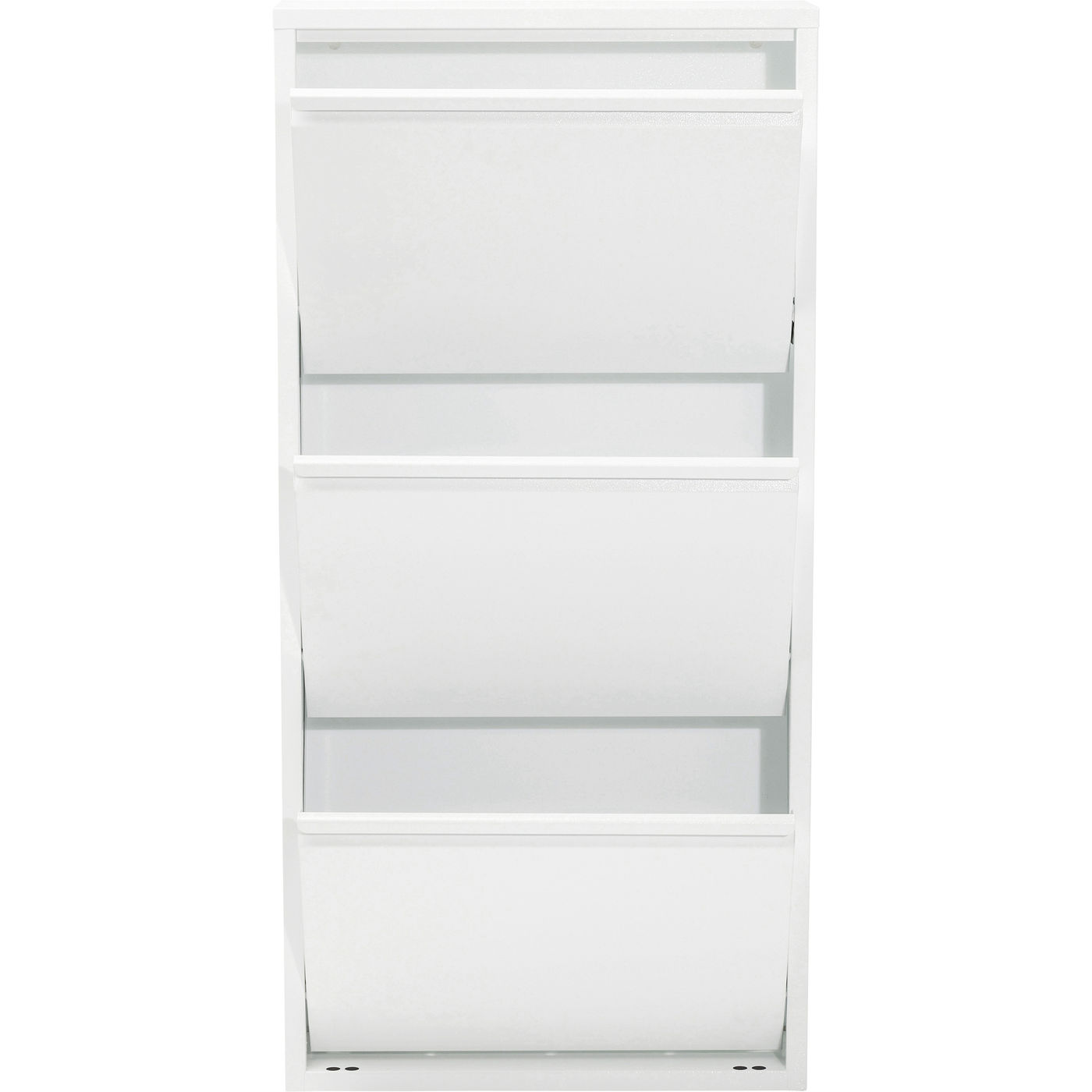 - Weißer Schuhschrank in modernem Stahldesign mit drei Kippfächern für mindestens 6 Paar Schuhe, je nach Modell und Größe