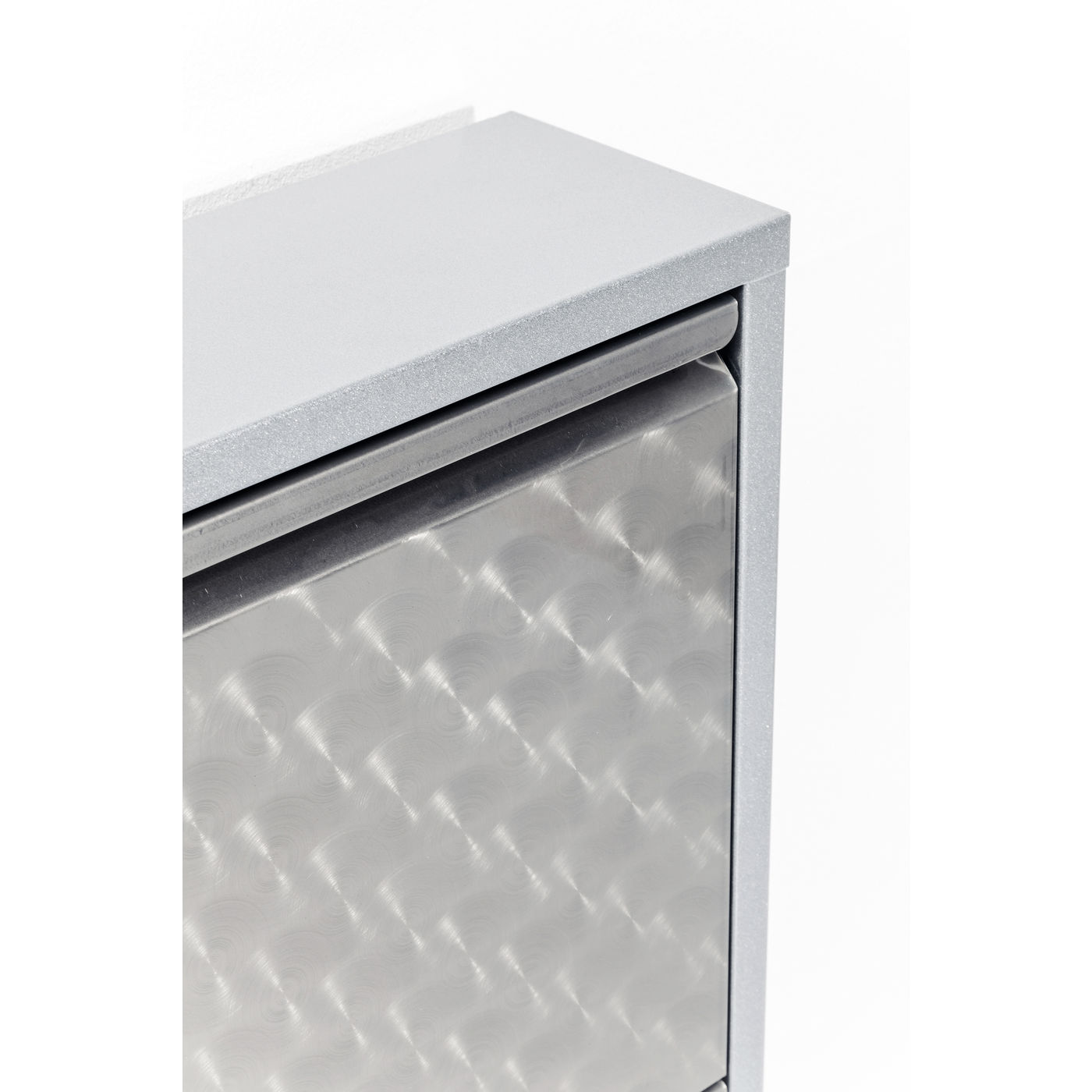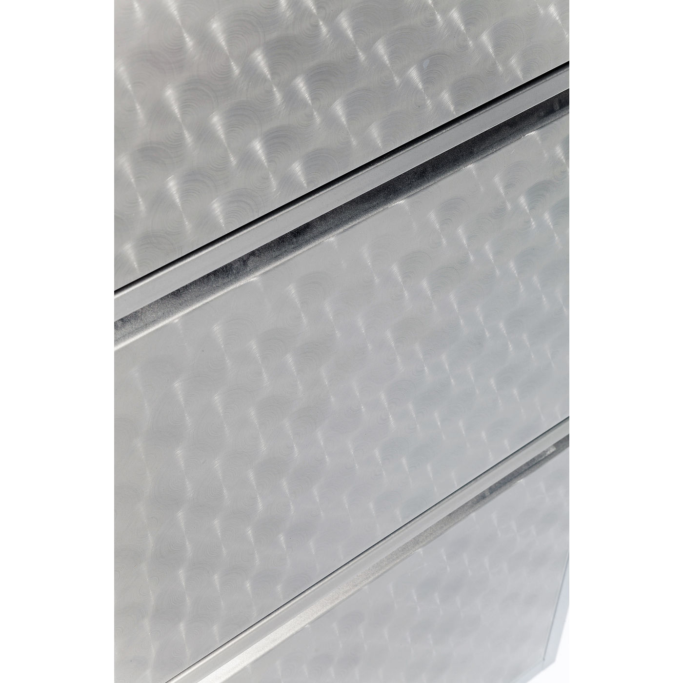 - Mittelhoher Schuhschrank aus silberglänzendem geflexten Stahlblech für ca. sechs Paar Schuhe
