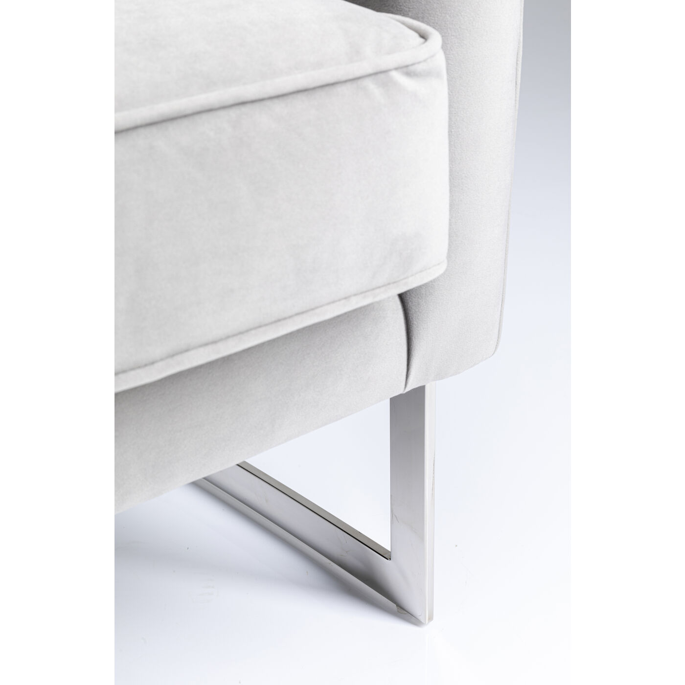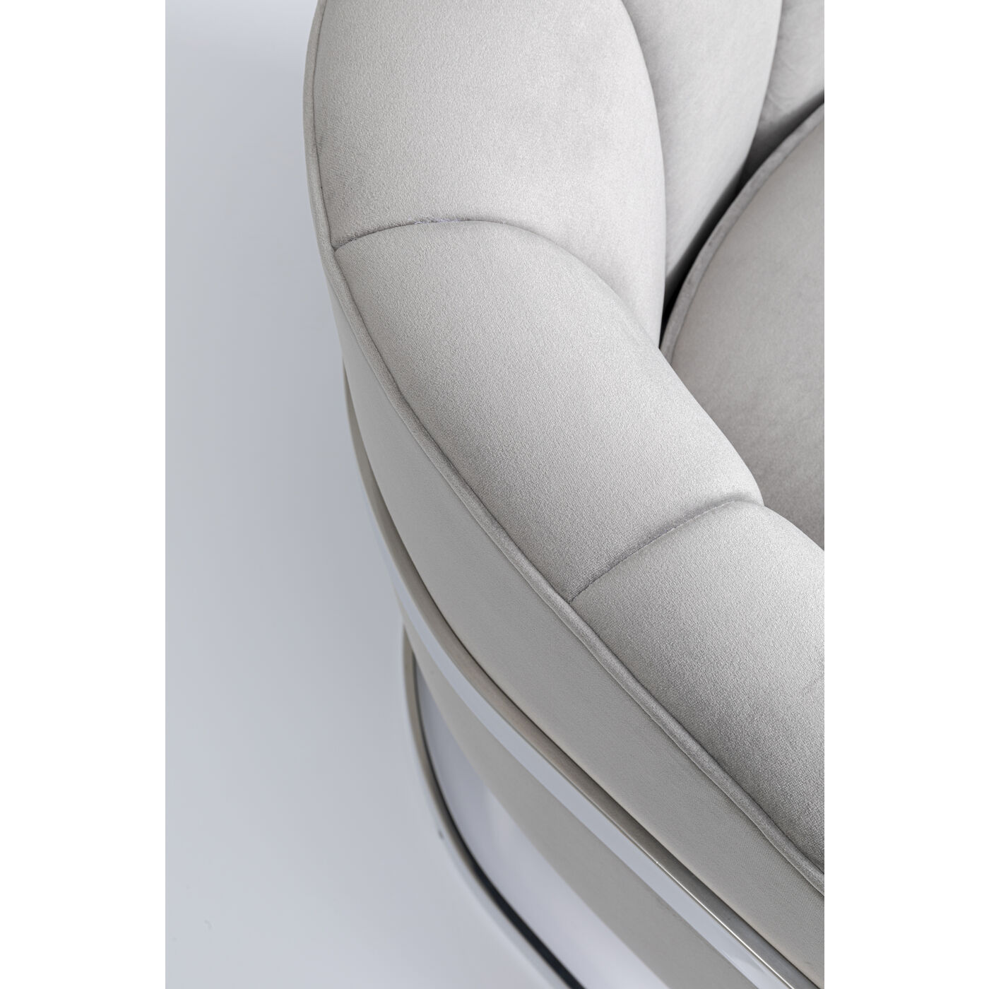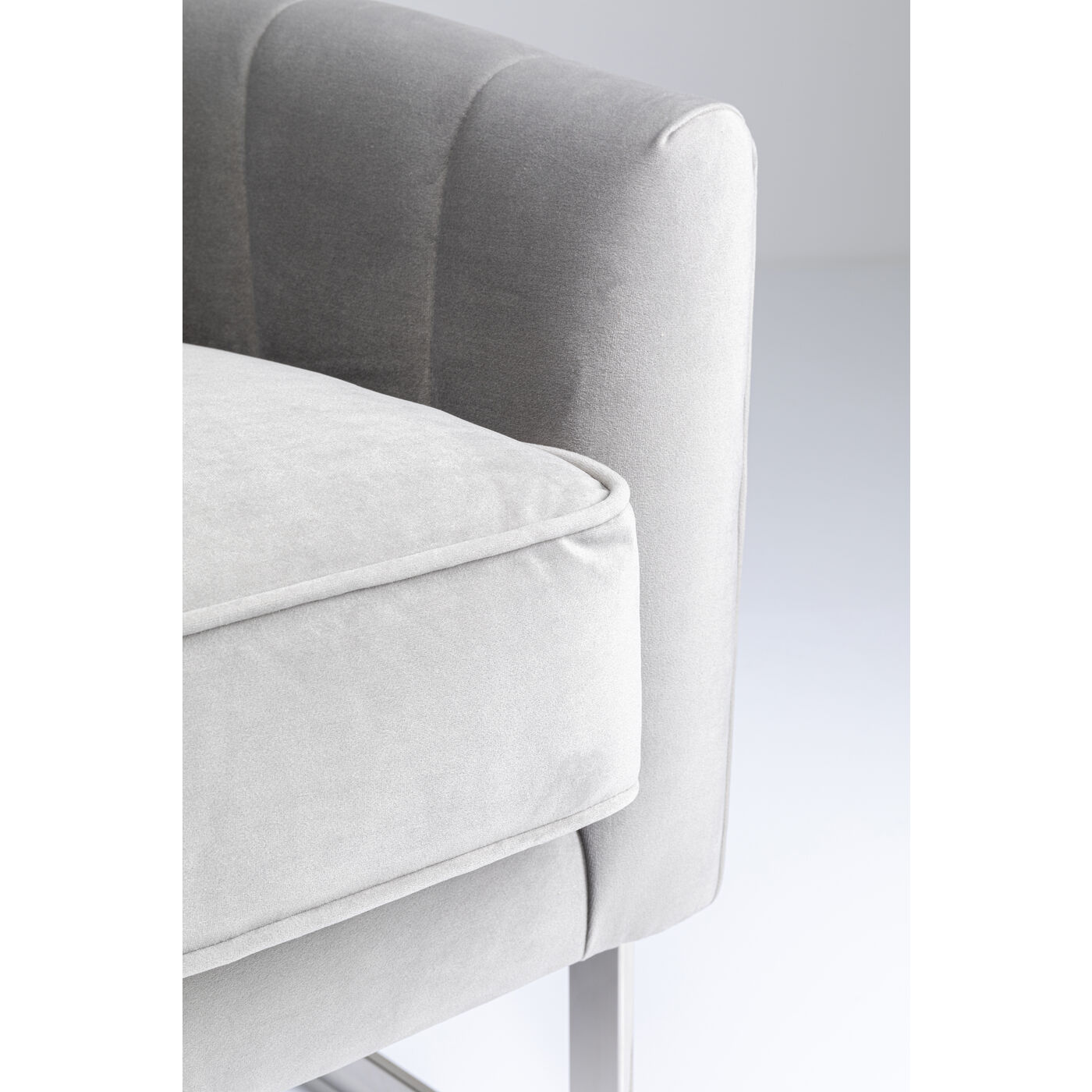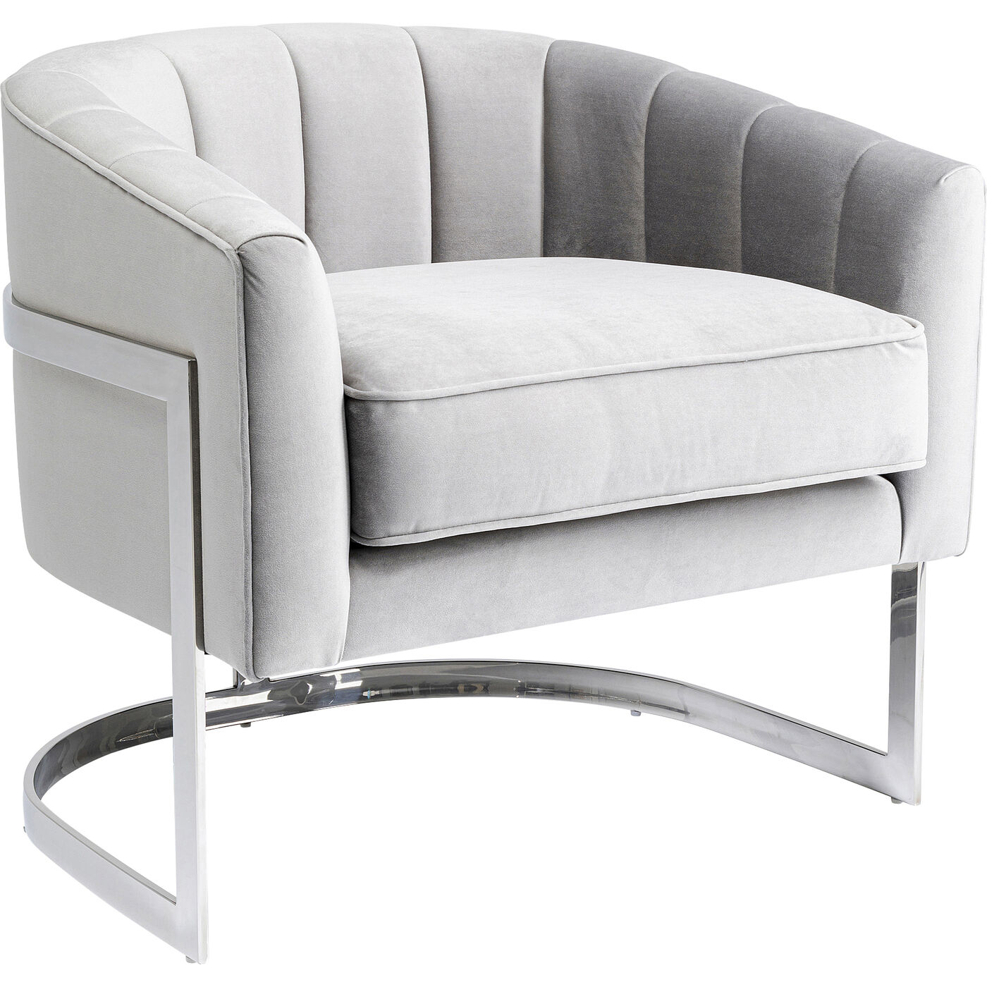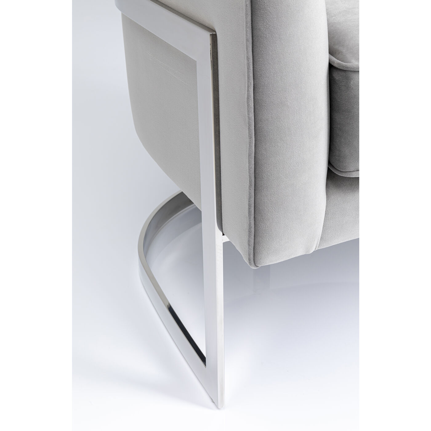 Wie aus einem stilvollen Loungebereich im Luxushotel wirkt dieser Armlehnsessel im Art-déco-Stil. Das verchromte Gestell und das edle Grau verleihen dem samtig-weichen Polstersessel pure Eleganz, die gepolsterte, durchgehende Seiten- und Rückenlehne mit gesteppten Ziernähten und das Sitzkissen sorgen für höchsten Sitzkomfort. Mit diesem Sessel setzen Sie ein Statement, egal ob Sie ihn als Einzelstück oder stilvoll als Sitzgruppe einsetzen.