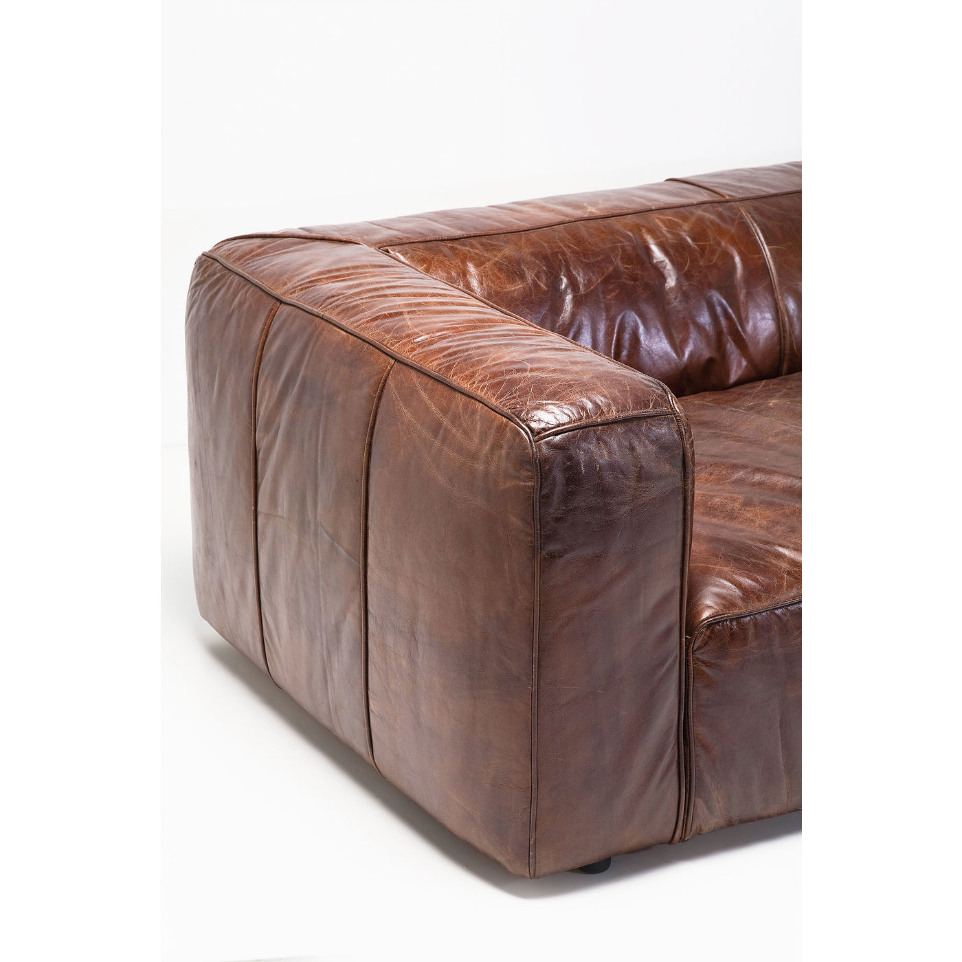 Sofa: Ausdrucksstarker Klassiker im feinen Vintage Look Das Sofa Cubetto ist ein ausladender Klassiker in feinem Vintage Look und braunem Top Grain Rindsleder. Die Kombination aus kubischen klaren Formen und dem hochwertigen weichen Leder in einem mittelbraunen warmen Farbton verleihen diesem Schmuckstück echtes Charisma und eine starke Ausstrahlung. Die großzügige Dimension und der angesagte Vintage Look sorgen gleichzeitig für entspannten Charme. Ein echtes Schmuckstück in einer tollen Qualität an dem Sie lange Freude haben werden. Als 3-Sitzer mit fast 2,6 Metern Breite und 1,95 Sitzbreite bietet das Sofa Cubetto zudem genügend Platz für entspannte und relaxte Momente auf höchstem Niveau. Die extra breiten Arm- und Rückenlehnen mit je 30 cm und die große Sitztiefe von 71 cm sorgen für entspanntes und genussvolles Sitzen und chillen. Couch