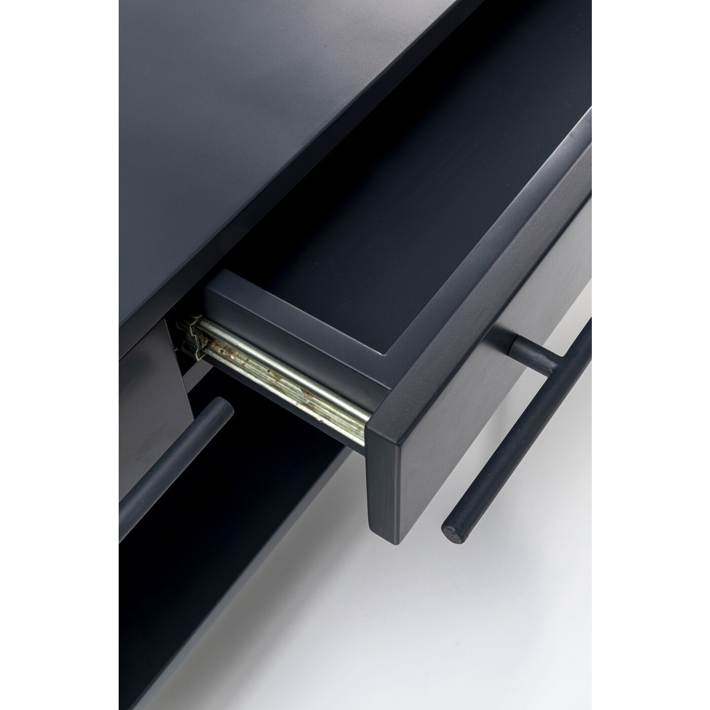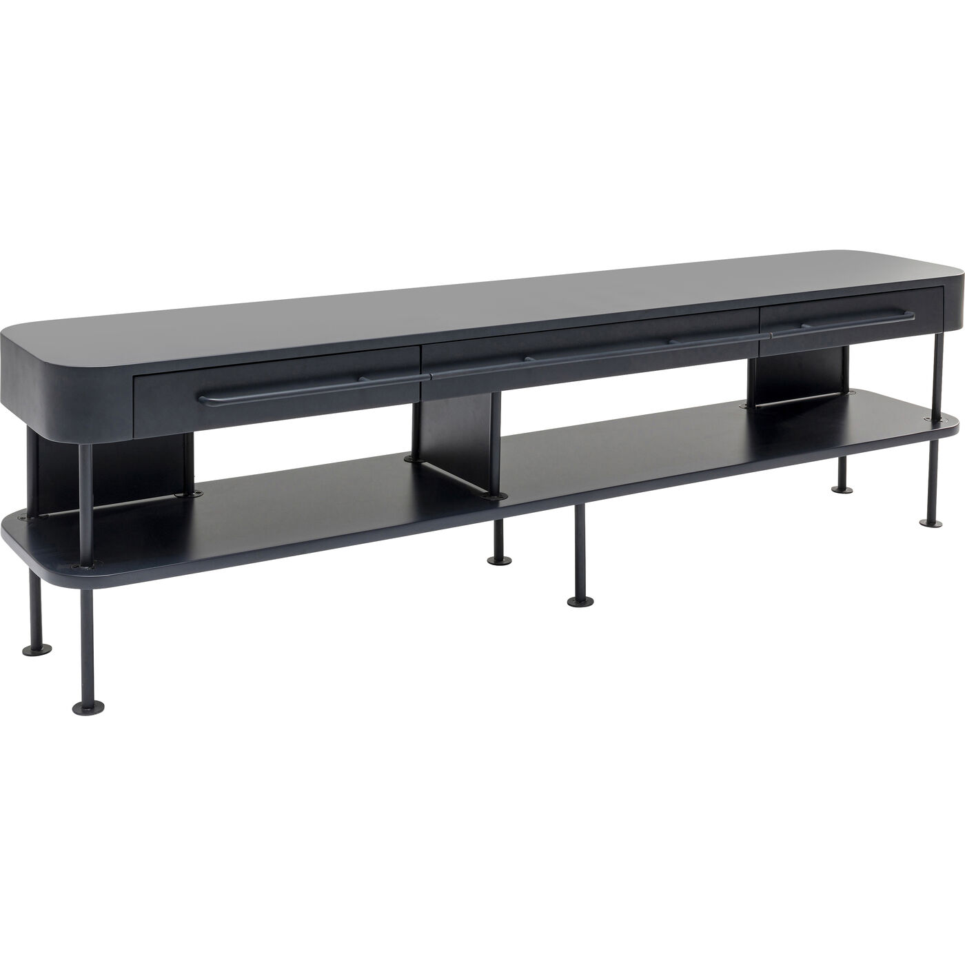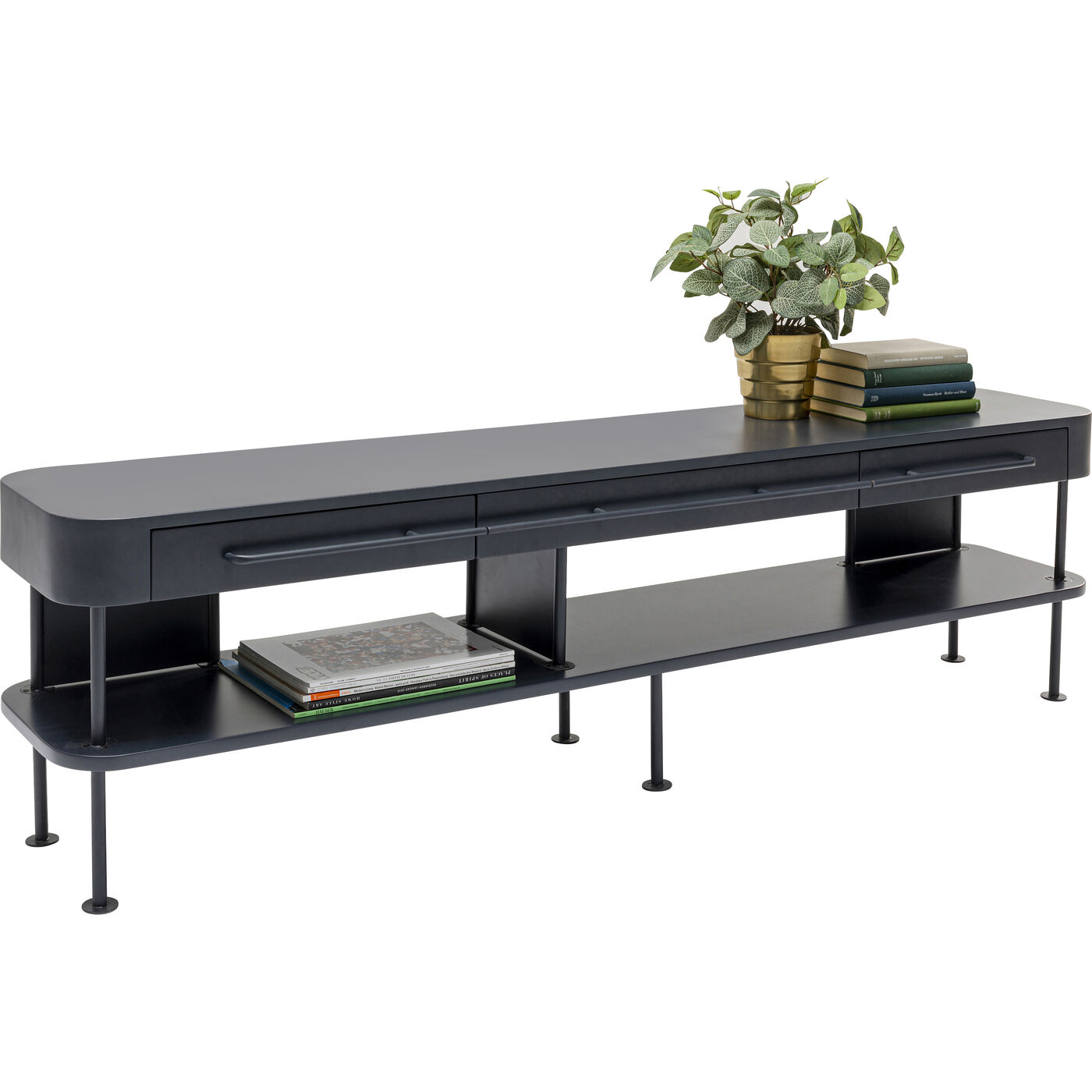- TV-Board in dunklem Grau, drei Schubladen und viel Abstellfläche