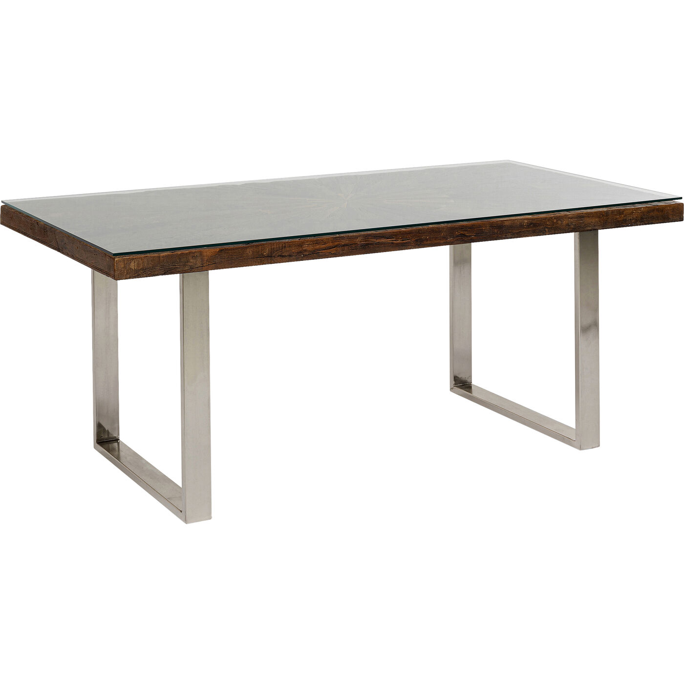 Die Kollektion Conley vereint die Kunst traditioneller Handwerksarbeiten mit einem klassisch modernen Formenschatz. Das herausragende Merkmal dieser Möbelstücke sind die kunstvollen Tischplatten und Fronten, die mit der charmanten Ausstrahlung von aufbereiteten Althölzern spielen. Schreinermeister legen dazu in Form gebrachte Stücke überwiegend aus Mango- und Akazienholz kreisförmig zu einem faszinierenden Sonnenmuster. An Tischen mit einer Platte in der Größe von 180 x 90 Zentimeter finden ca. sechs bis acht Personen Platz.