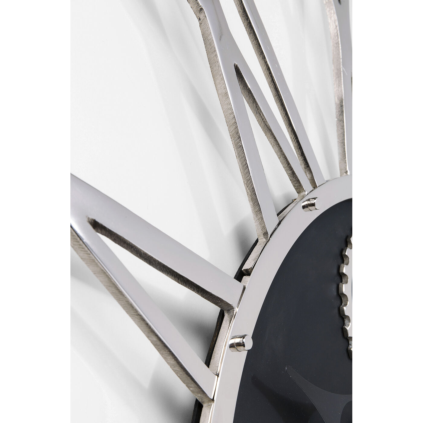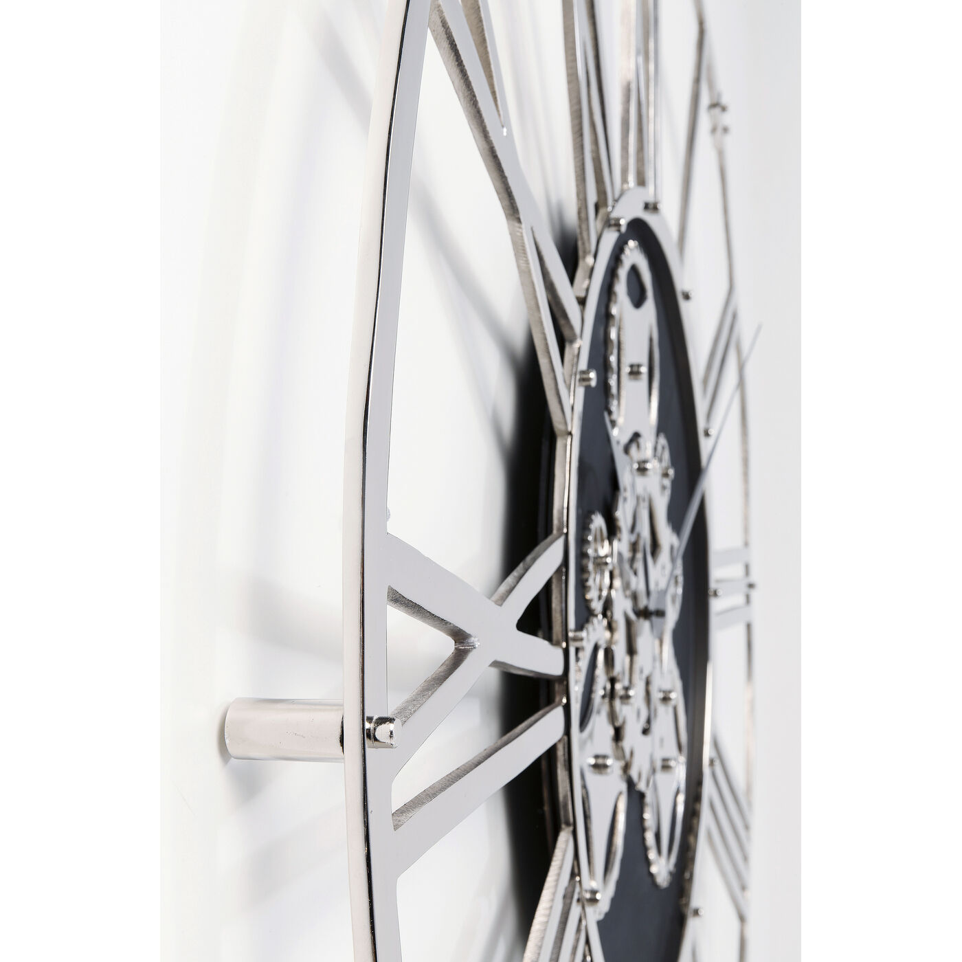 Wanduhr in charmantem Stilmix Bei dieser stylischen Wanduhr trifft antiker Charme auf stilvolle Moderne: Beim Ziffernblatt mischen sich römische Zahlen mit dem freigelegten Uhrwerk. Nun wissen wir endlich, was die Zeit voran treibt. Hoch glänzende Oberfläche in Chrom-Optik. Radikal rebellisch und leidenschaftlich lässig – das sind die Merkmale unserer Fashion Rebels Trendwelt. Konventionell war vorgestern: Mit dieser Trendwelt durchbrechen wir die Grenzen der Förmlichkeit. Lieb gewonnene Vintage-Objekte und neu geborene Ikonen der Moderne werden hier zu unwiderstehlichen Arrangements kombiniert. Perfekt für alle Wohnrebellen des digitalen Zeitalters!