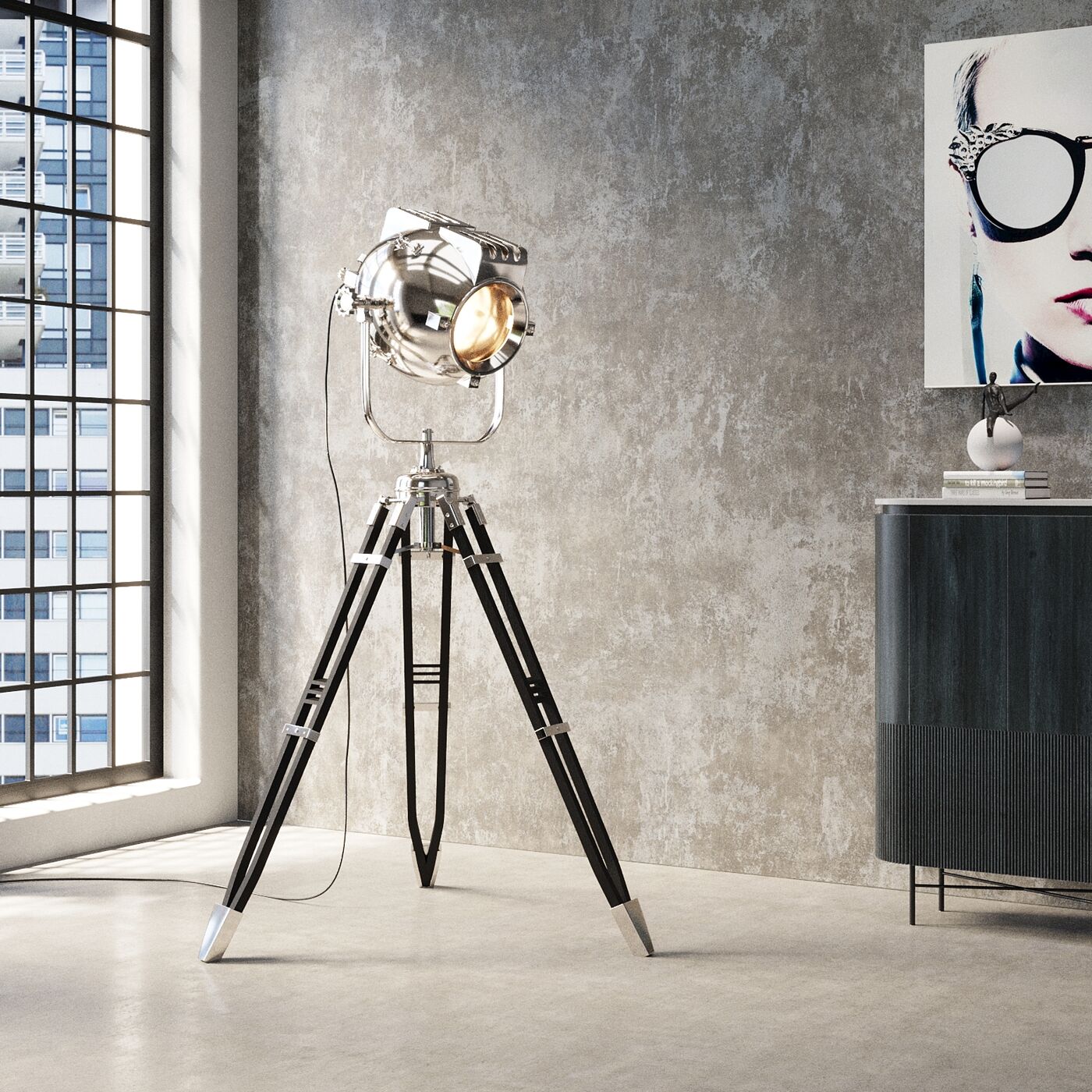 Diese XL-Stehleuchte feiert die Ära der großen Filmstudios und Hollywood-Stars, als die Kinostreifen noch auf Zelluloid gedreht wurden. Die Standlampe im Stil eines Filmscheinwerfers ist mit ihrem Retro-Look ein absoluter Blickfänger. Sie ist dank ihrer stattlichen Größe wie gemacht für große, offene Wohnbereiche und schenkt indirektes, sanftes Licht. 230 V, 50/60 Hz, Leuchtmitteltyp LED, Fassung E27, Anzahl Leuchtmittel 1, max. 15 Watt, Leuchtmittel nicht inklusive, Leuchtmittel nicht austauschbar4 m Kabellänge 2650 cm Ø Schirm handgearbeitet Schirm: schwenkbar Tretschalter Kabel textilummantelt teilzerlegtGestell: Mango Massivholz lackiert, Schirm: Aluminium vernickelt, 4 m Kabellänge, 26,50 cm Ø Schirm, handgearbeitet, Schirm: schwenkbar, Tretschalter, Kabel textilummantelt, teilzerlegt,