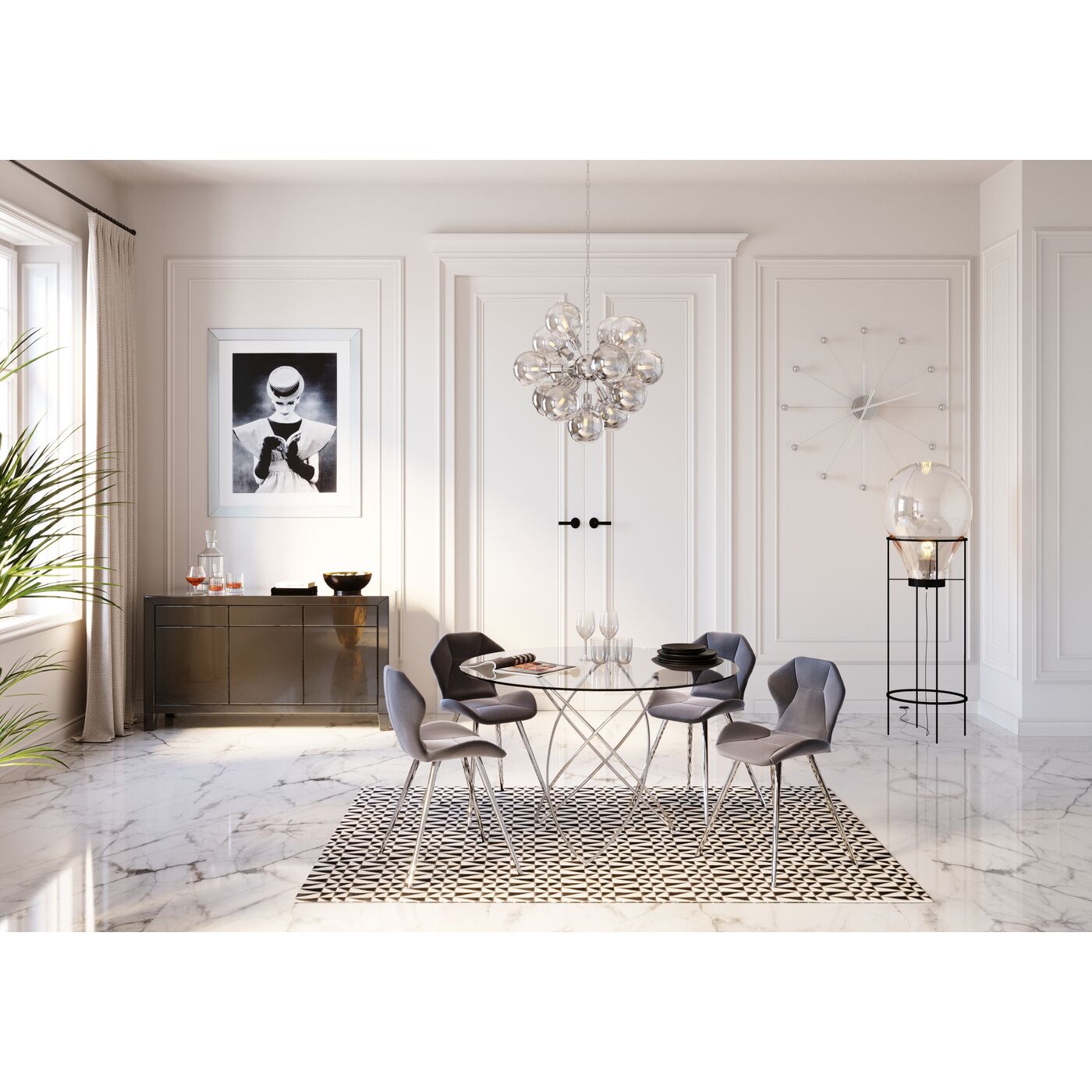 Wer eine Alternative zu einem klassischen rechteckigen Tisch sucht, findet mit dem runden Tisch Molekular eine fantastische Lösung. Runde Esstische sind nicht nur besonders kommunikativ, sie sind auch besonders flexibel, was die Anzahl der Sitzplätze angeht. Seine luftige, transparente Optik passt gut in offene Wohn-Ess-Bereiche oder in Einzimmer-Apartments. Dort erfüllt der Esstisch nicht nur alle gewünschten Funktionen, sondern verleiht dem Raum auch eine besonders stilvolle Note.max. Belastung: 100kgTischbeine: Edelstahl poliert, Tischplatte: Sicherheitsglas 10 mm