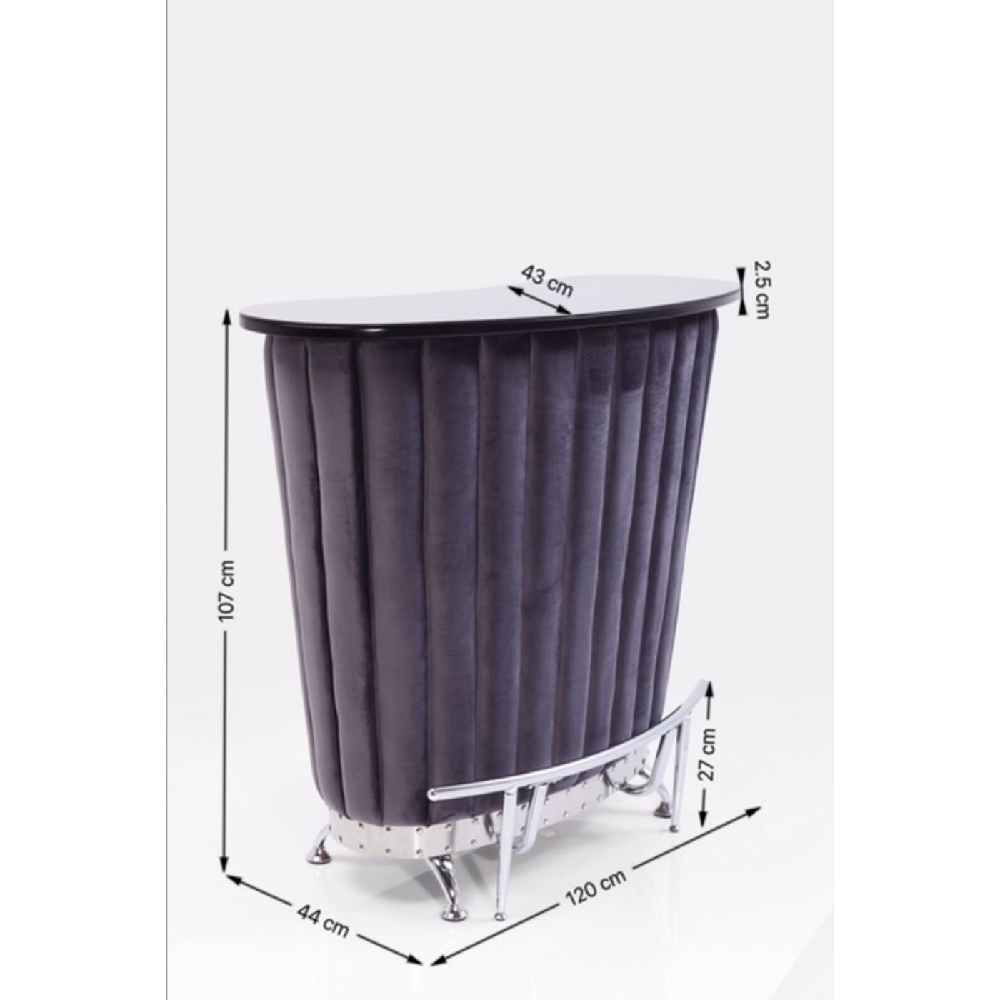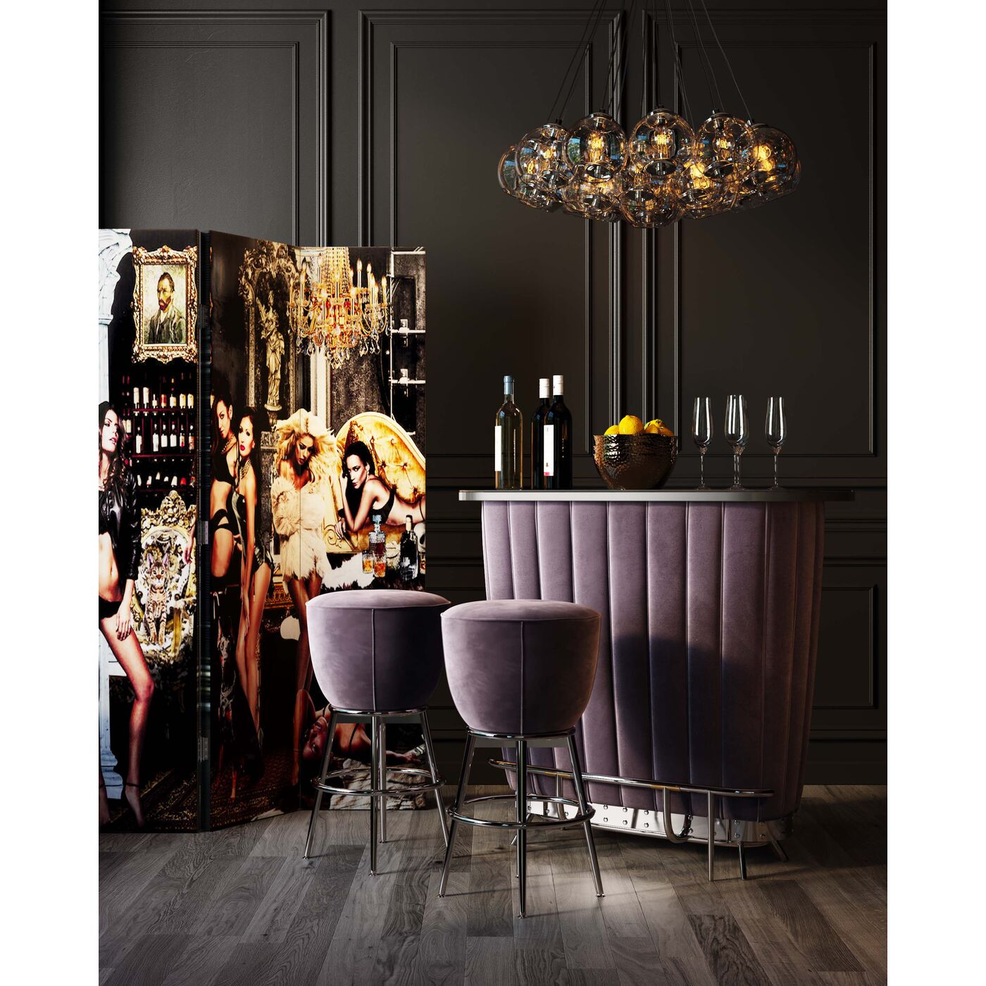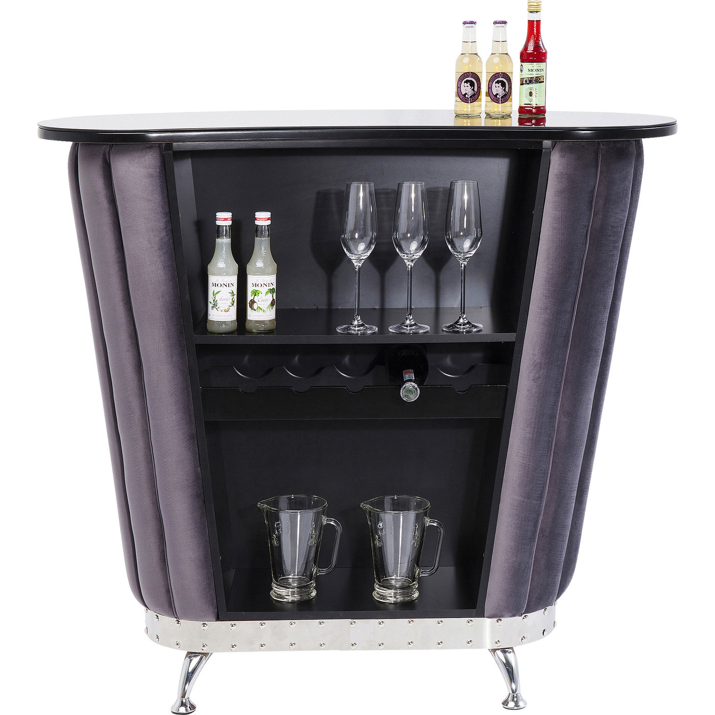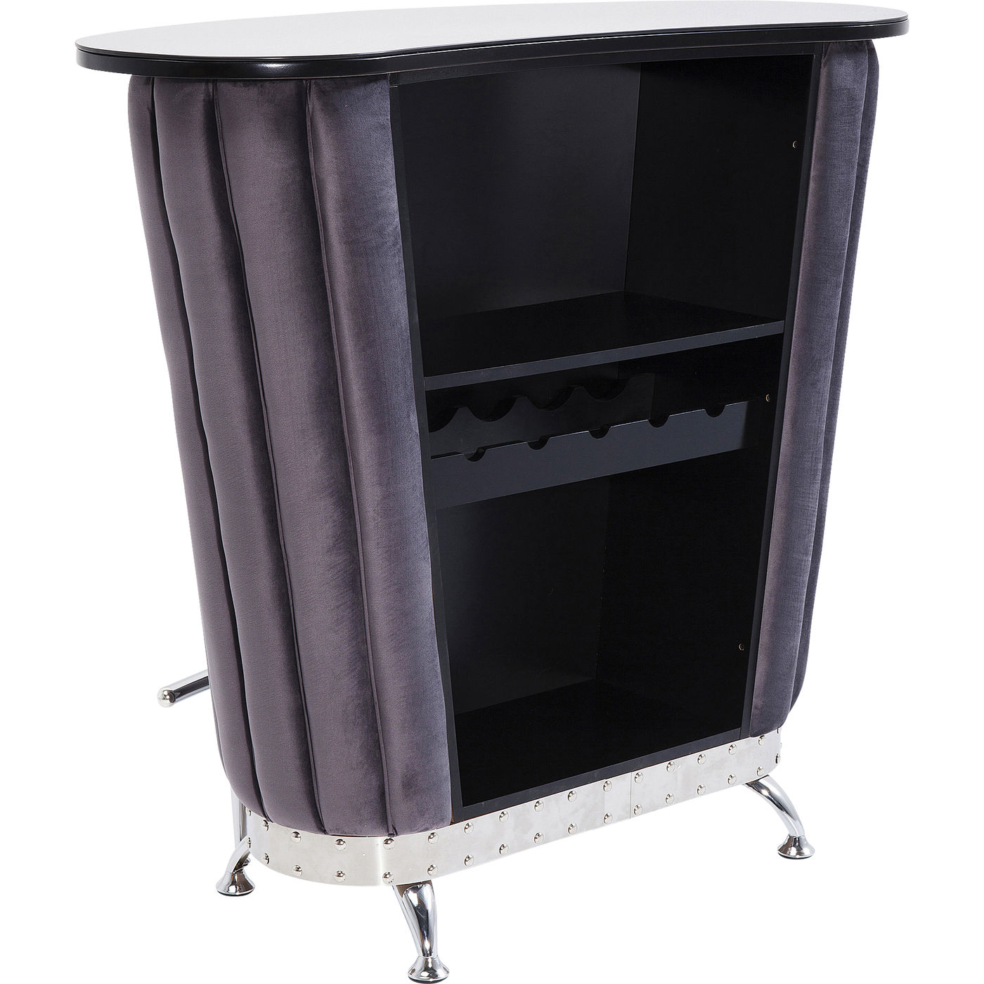 Während die anderen noch herumdiskutieren, wohin sie gehen, sind Sie längst da – denn die exklusivste Lieblingsbar befindet sich direkt in Ihrem Wohnzimmer. Mit verchromten Füßen, schimmernder Polster-Front und einem Tresen aus schwarzem Glas hätte sie auch im alten Hollywood Karriere machen können. Cheers! Passende Barhocker sind auch erhältlich.