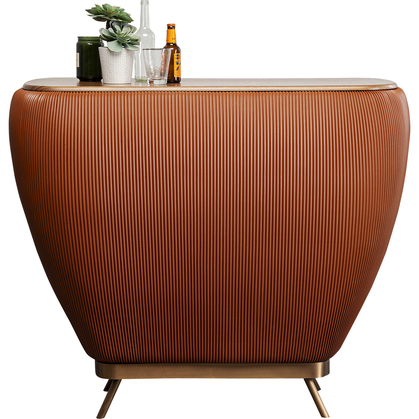 - Der Bartresen bietet auf der Rückseite großzügigen Stauraum und Fächer für Flaschen