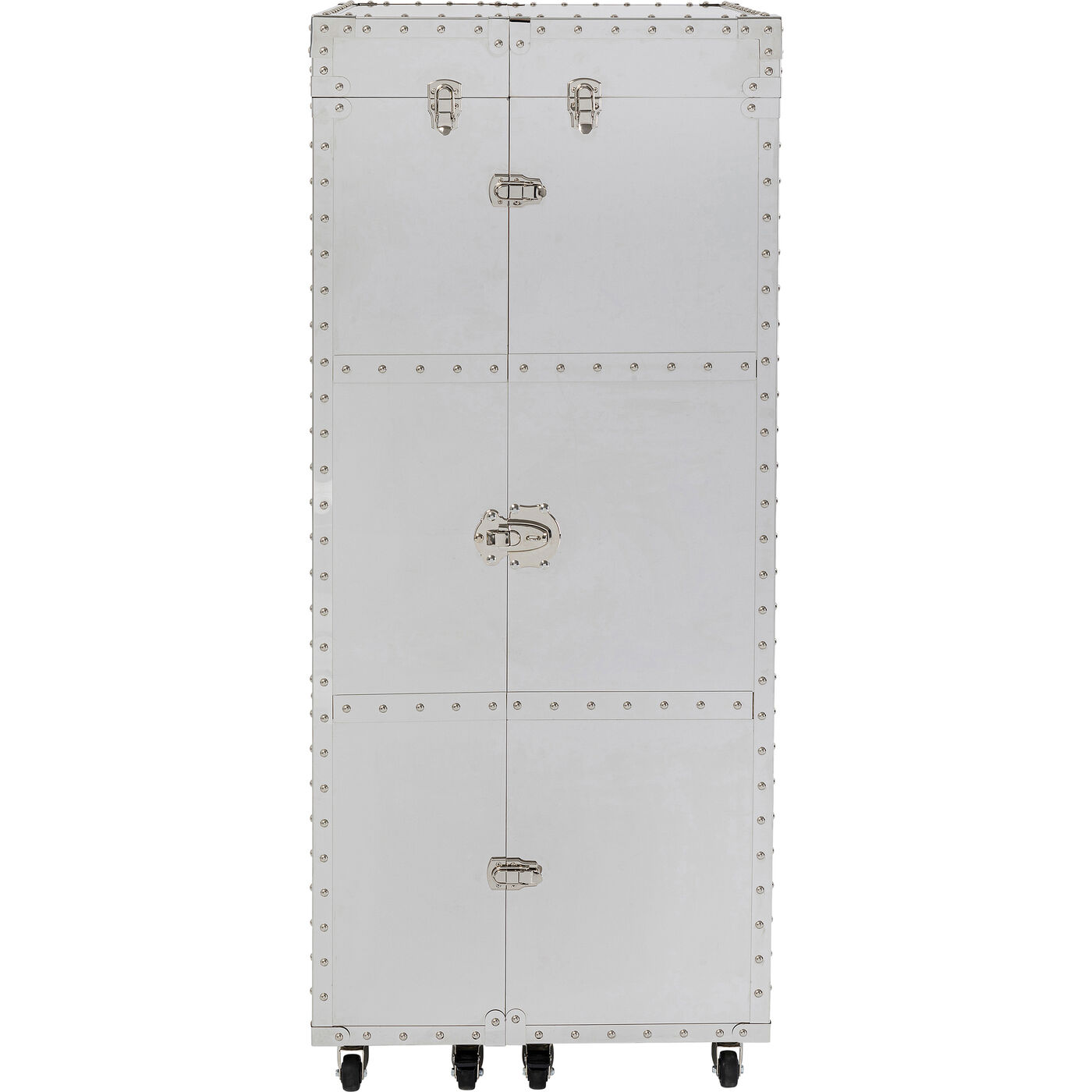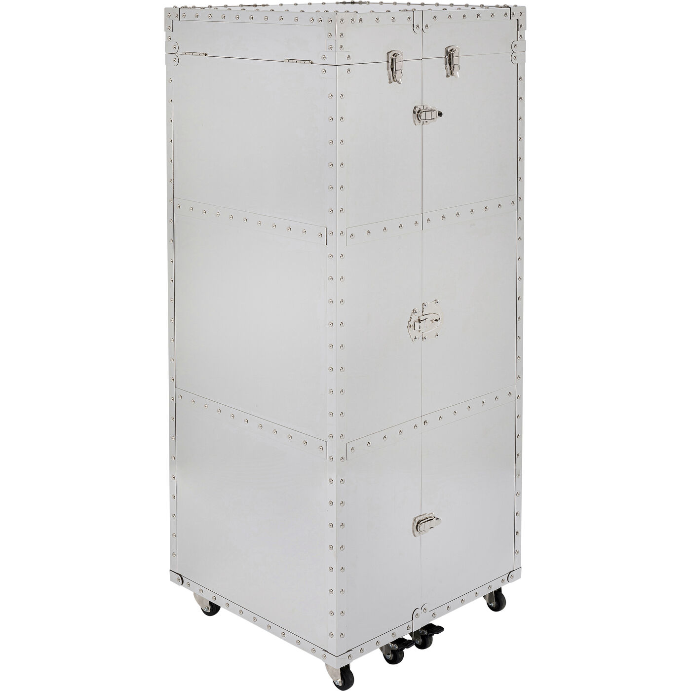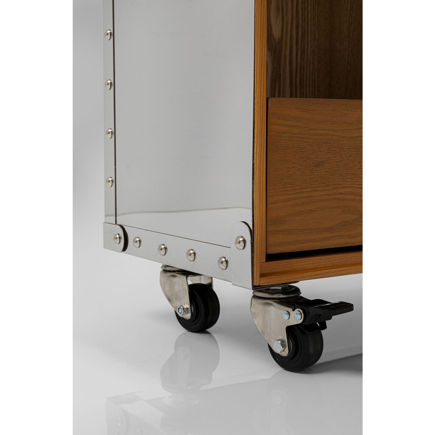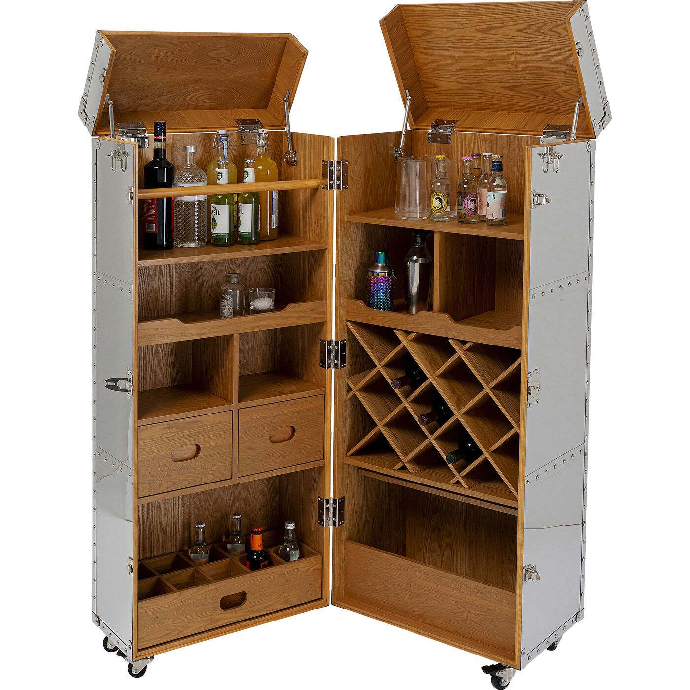 Rollbare Hausbar-Möbel mit Funktionen sind eine großartige Möglichkeit, um Platz zu sparen und das Beste aus dem Wohnzimmer herauszuholen. Hausbars sind der neueste Trend im Bereich der funktionalen Möbel, und der Barschrank in edlem Edelstahl ist ein perfektes Beispiel dafür. Inspiriert von klassischen Übersee Reisekoffern verfügt dieser Barschrank über eine Vielzahl funktionaler Stauraumvorrichtungen wie Fächer zum Aufklappen, Fächer für Flaschen und Gläser sowie Schubladen. Sogar eine Geschirrtuch-Stange und ein herausnehmbares Tablett bringt diese Hausbar mit. Dank der Rollen kann der Barschrank problemlos von Raum zu Raum transportiert werden. Mit dieser rollbaren Hausbar zum Aufklappen ist immer alles zur Hand, um Gäste zu verwöhnen und die nächste Party zum Erfolg zu machen.