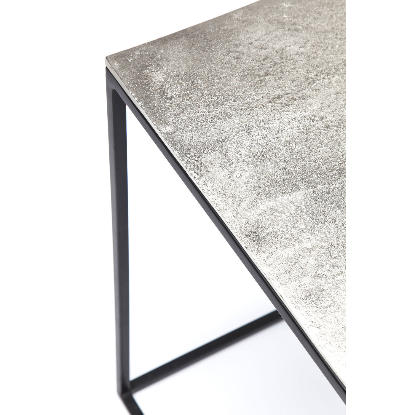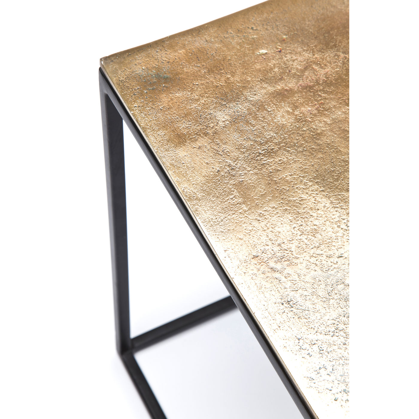 Beistelltisch: Gold – Silber - Bronze Ob als Trilogie oder einzeln, diese Beistelltische sorgen für stilvolle Akzente. Ein optisch leichter und filigraner Unterbau aus schwarz lackiertem Eisen trägt eine massiv wirkende Tischplatte die mit Patina und Vintage Spuren einen reizvollen Kontrast erzeugt. Dieses Set aus drei Beistelltisch besitzt einerseits Retro-Charakter wirkt anderseits durch den reduzierten Chic sehr modern. Perfekte Harmonie dennoch eine gewisse Spannung in sich birgt: die Beistelltische Loft Vintage erlauben dekorativen Elementen eine stimmungsvolle Präsentation. Auch in einer runden Ausführung erhältlich.