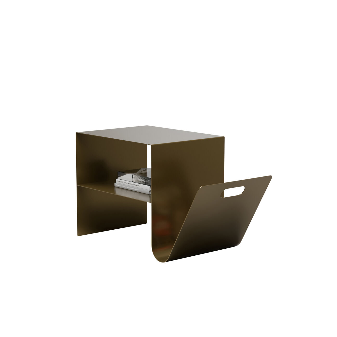 Architektonische Klarheit mit raffinierter Funktion: In edlem Bronze-Finish setzt dieser Beistelltisch aus pulverbeschichtetem Stahl einen eleganten Akzent im Raum. Der Entwurf von Andreas Weber, exklusiv für KARE, verbindet reduzierte Ästhetik mit praktischer Vielseitigkeit. Das integrierte Zeitschriftenfach bietet stilvollen Stauraum und sorgt für Ordnung mit Designanspruch. Dank kompakter Silhouette fügt sich das Möbel mühelos neben Sofa, Sessel oder Bett ein. Die robuste Verarbeitung und die pflegeleichte Oberfläche machen den Tisch zu einem langlebigen Begleiter, der modernen und eleganten Interieurs eine subtile metallische Wärme verleiht.