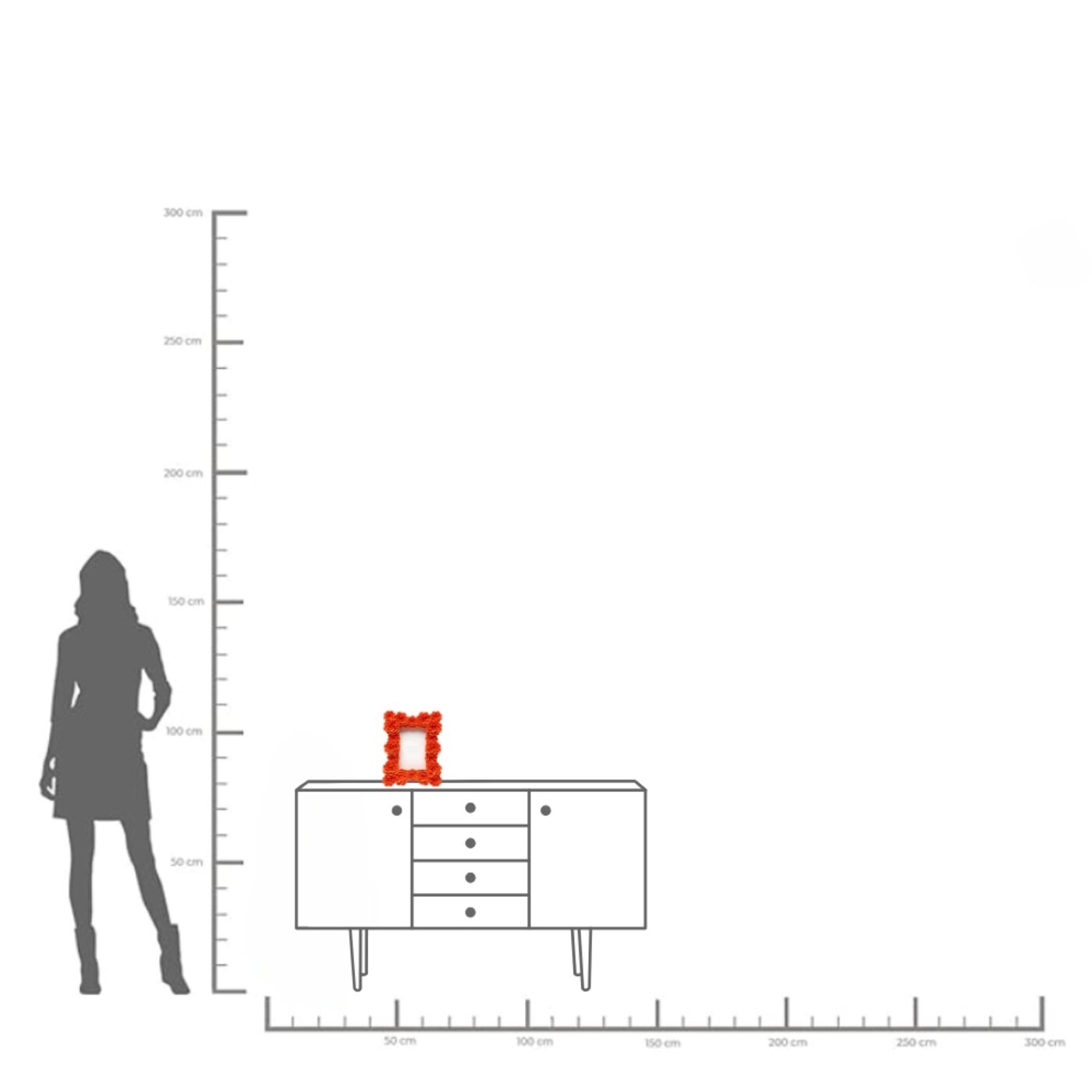 Dieser Bilderrahmen verwandelt Erinnerungen in kleine Kunstwerke voller Lebensfreude. Leuchtendes Orange trifft auf detailreich gearbeitete Blüten, die wie zarte Skulpturen den Rand verzieren und einen Hauch verspielter Romantik ins Zuhause bringen. Gefertigt aus formstabilem Material, bleibt er langlebig und vielseitig nutzbar – ob hochkant oder quer. Besonders effektvoll wirkt der Rahmen in einer bunten Bilderwand, wo er als strahlender Farbtupfer Akzente setzt, oder einzeln auf einem Sideboard, einer Fensterbank oder dem Schreibtisch arrangiert. In modernen und eklektischen Wohnstilen sorgt er für Frische und eine charmante, fröhliche Note.