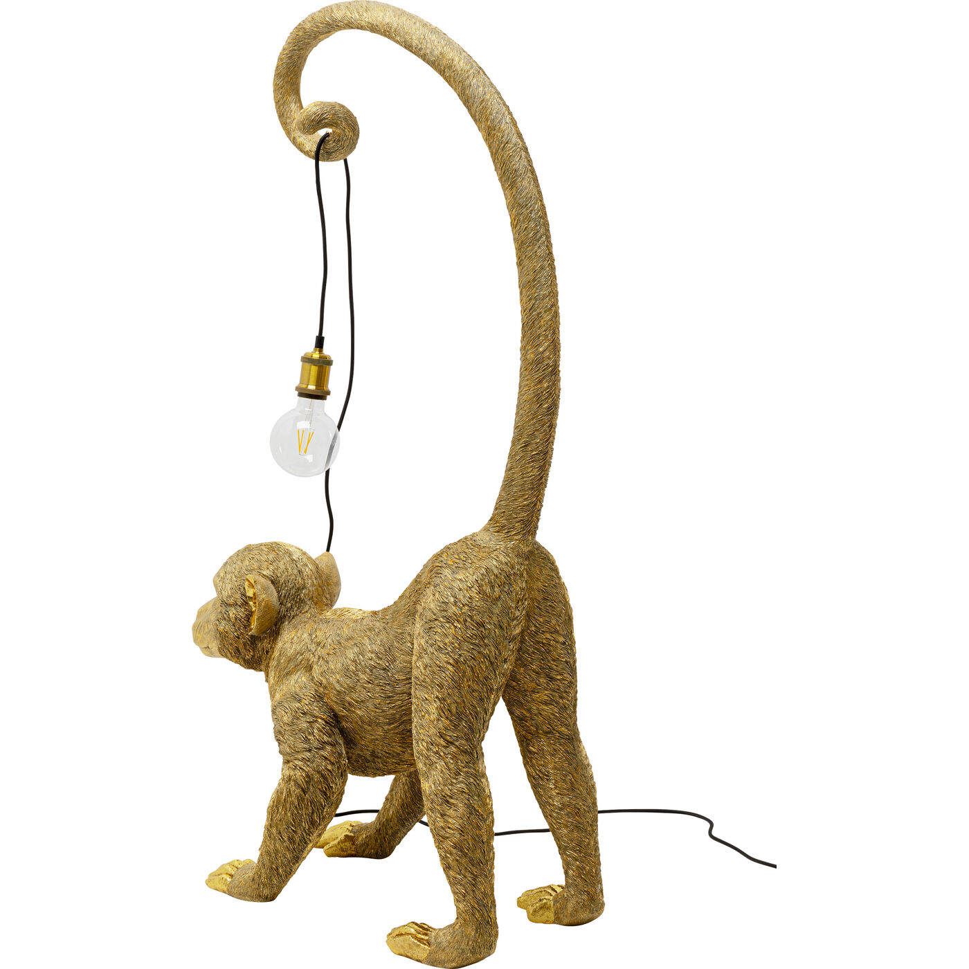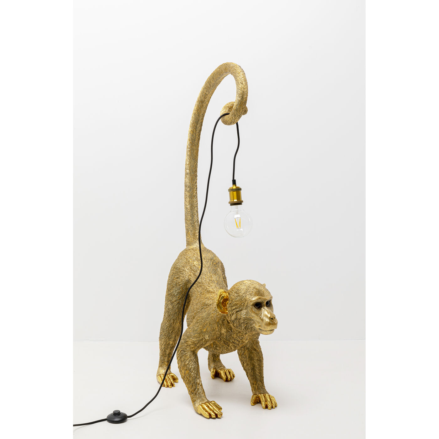 Dieser smarte Hausgenosse ist genau richtig für alle, die mit Standardlampen und Massenware nichts am Hut haben. Eine Affenfigur, die mit ihrem Schwanz ein Lichtkabel hält, verleiht jedem Interieur eine überraschende, ästhetische Note. Und Sie beweisen Ihren extravaganten Geschmack und Sinn für Humor. Das pflegeleichte Haustier hat auf jeden Fall einen höchst dekorativen Charakter und wer will, bringt mit Kissen mit Exotik-Prints noch mehr Dschungelfieber in sein Zuhause. Die Affenleuchte ist aus Kunstharz gefertigt und bemalt. Entdecken Sie bei KARE viele weitere, witzige Tierlampen im Sortiment. 230 V, 50/60 Hz, Fassung E27, Anzahl Leuchtmittel 1, max. 40 Watt, Leuchtmittel nicht inklusive, Leuchtmittel austauschbar