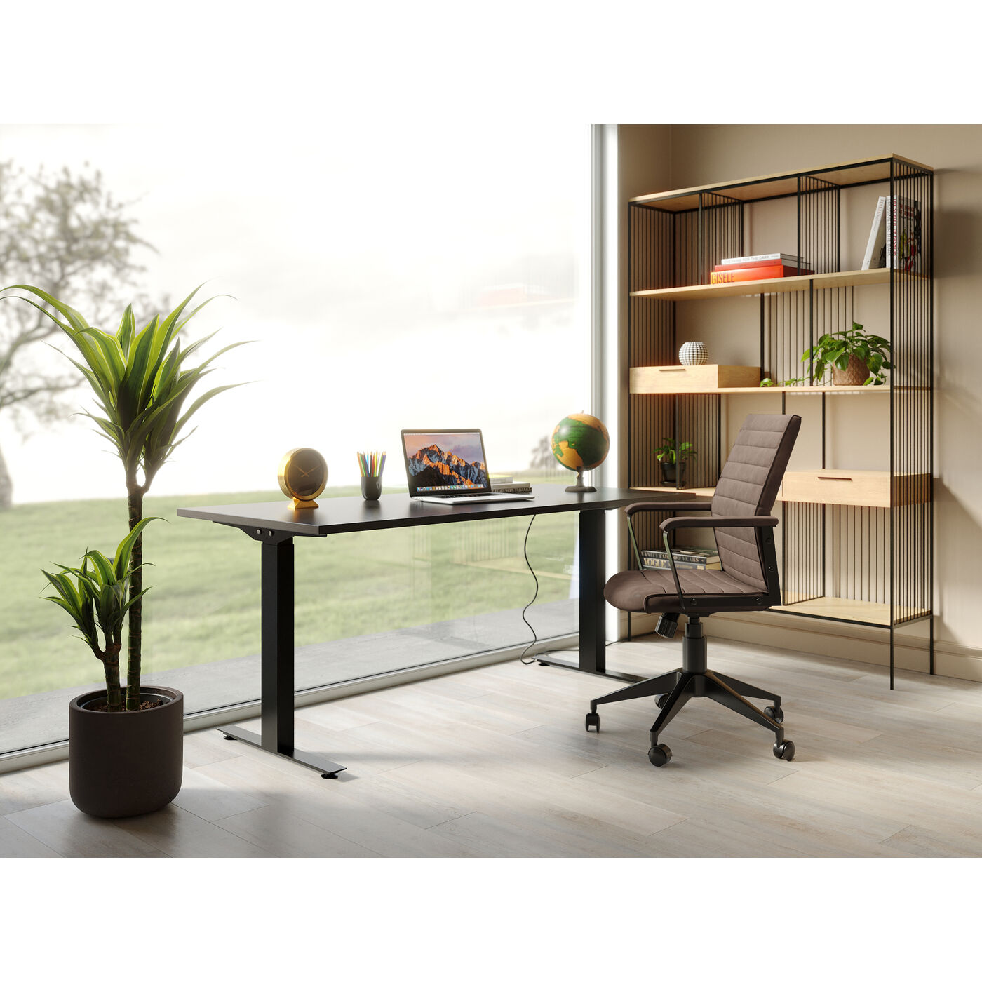 - Der Drehstuhl in Braun ist stufenlos per Gasdruckfeder höhenverstellbar, 360 Grad drehbar und verfügt über eine individuell einstellbare Wippfunktion