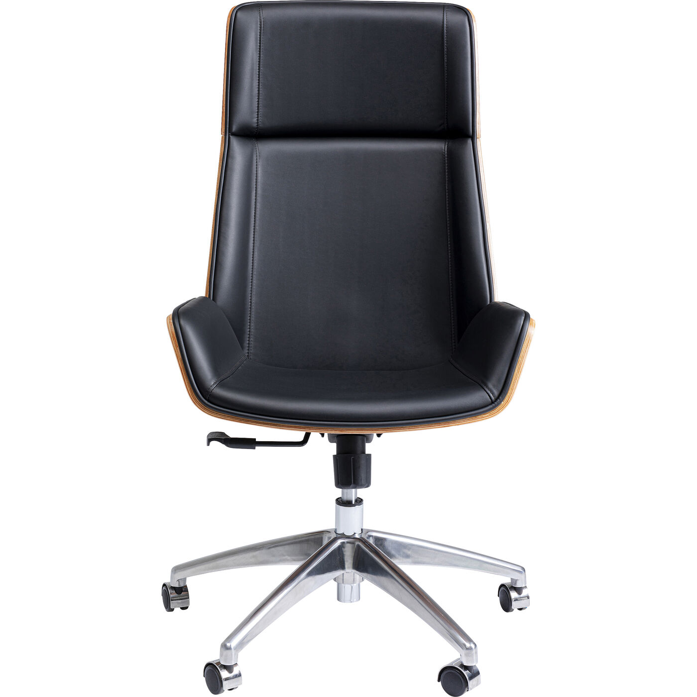 - Schwarzer Bürostuhl in eleganter Schalenform mit Walnuss-Holz