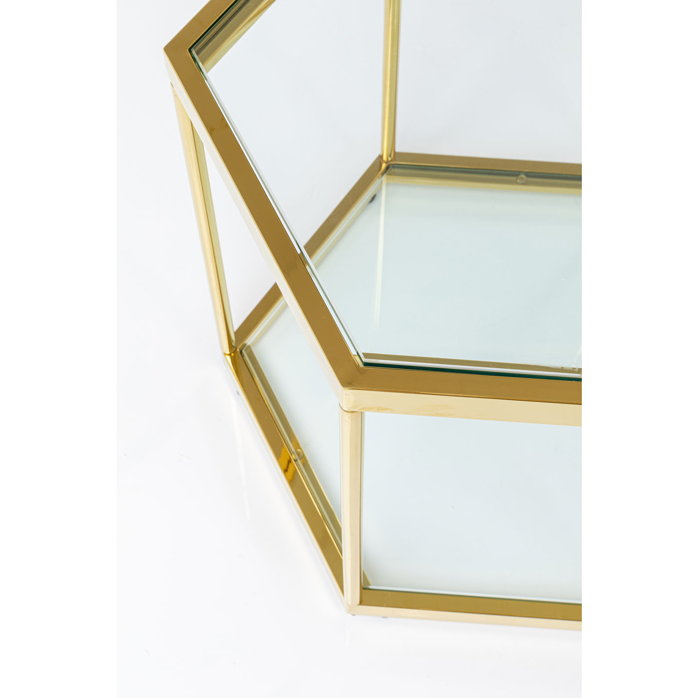 - Modern Glam - Sechseckiger Glas-Couchtisch mit einem Gestell aus goldfarbenem Stahl
